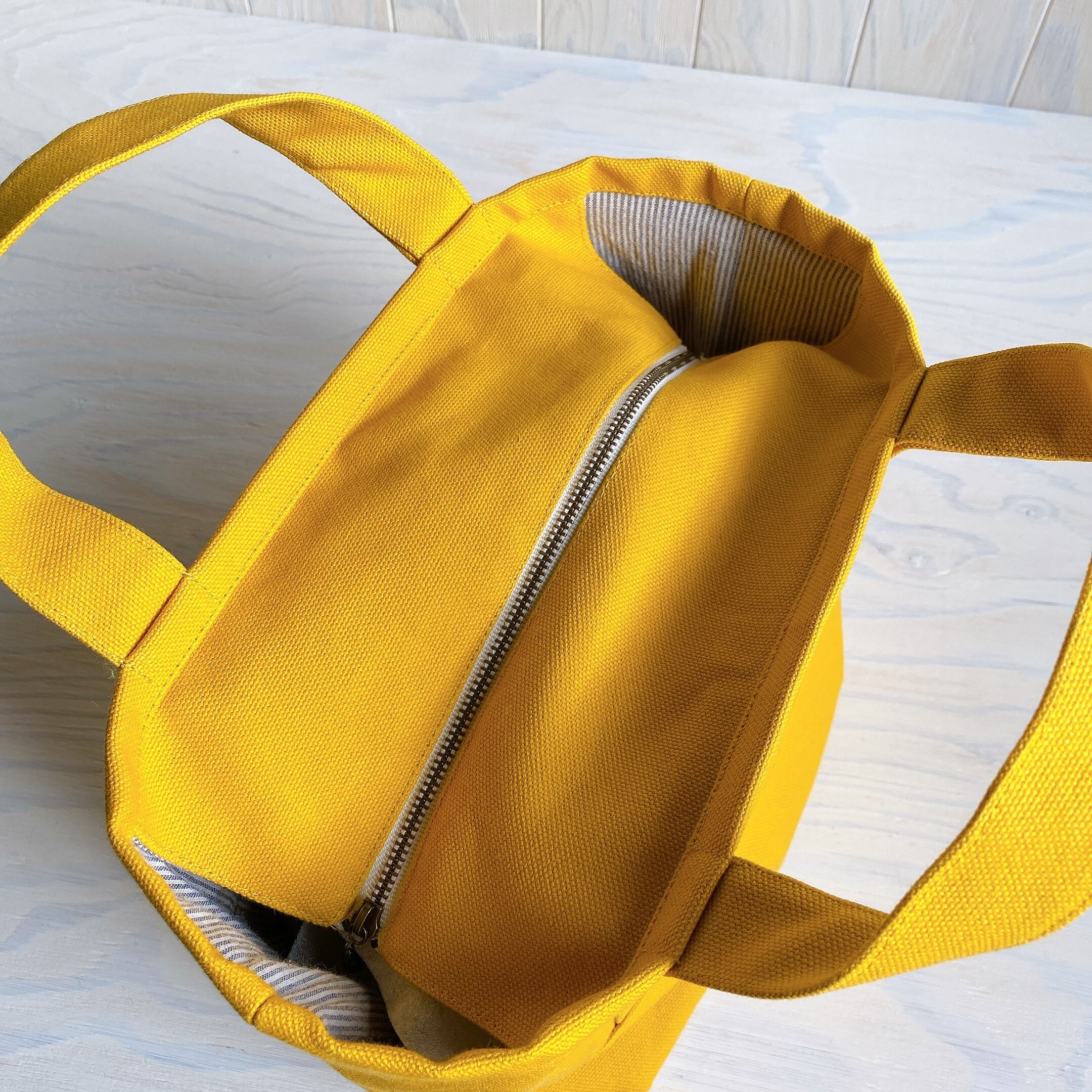 8号帆布のしっかりミニトートバック・ファスナータイプ(キイロ)