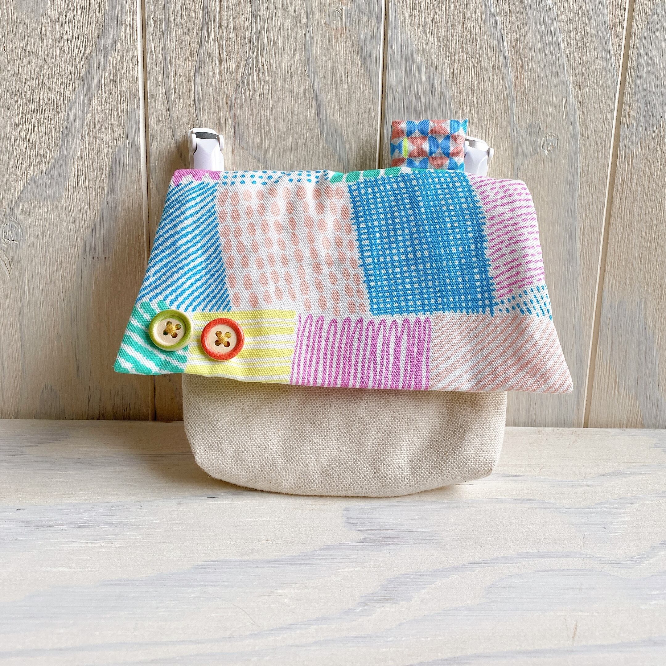 裏にはちいさいポケットを付けて絆創膏なども持ち歩けるようにしました。