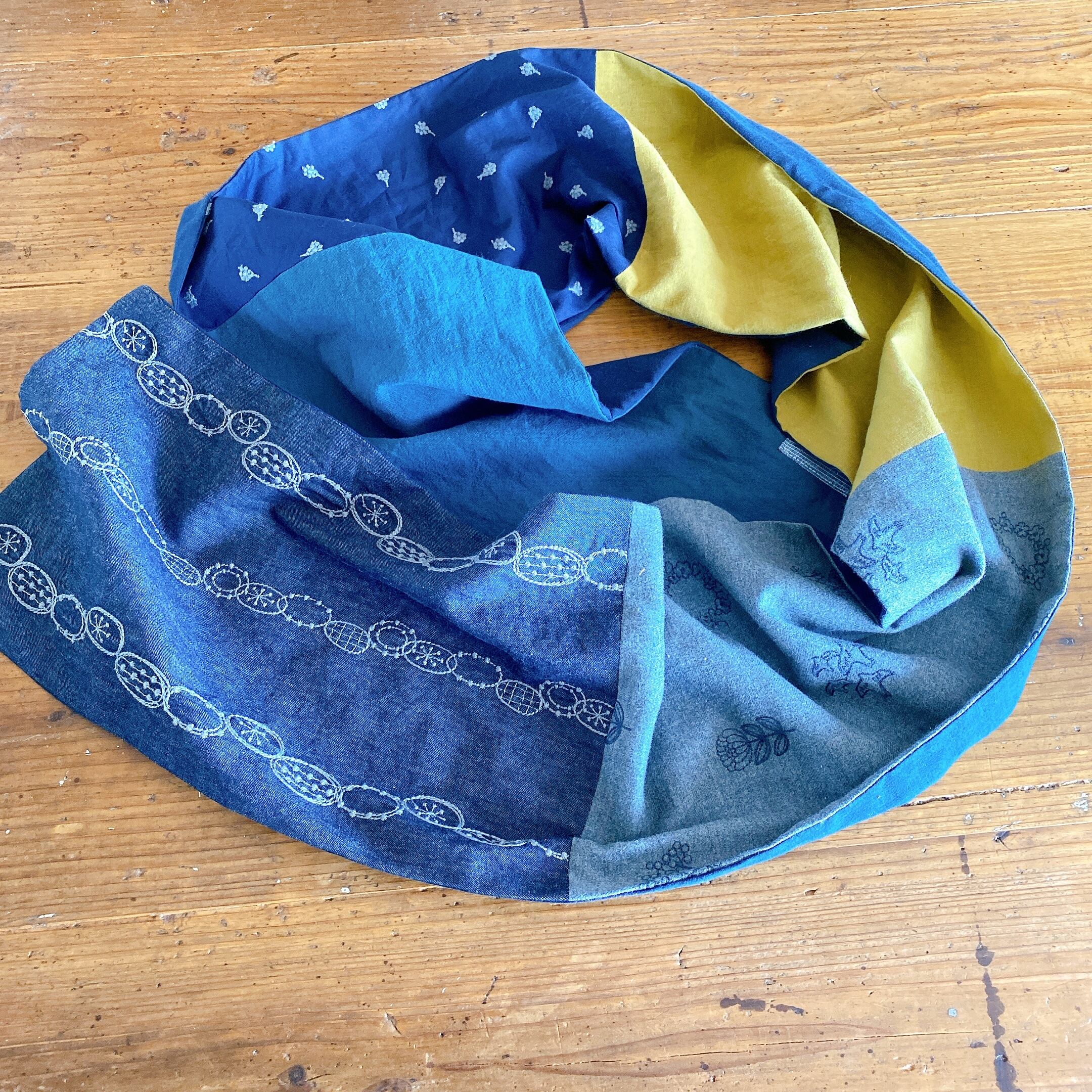 巻く場所によって、柄の出方が変わりますのでお洋服に合わせて