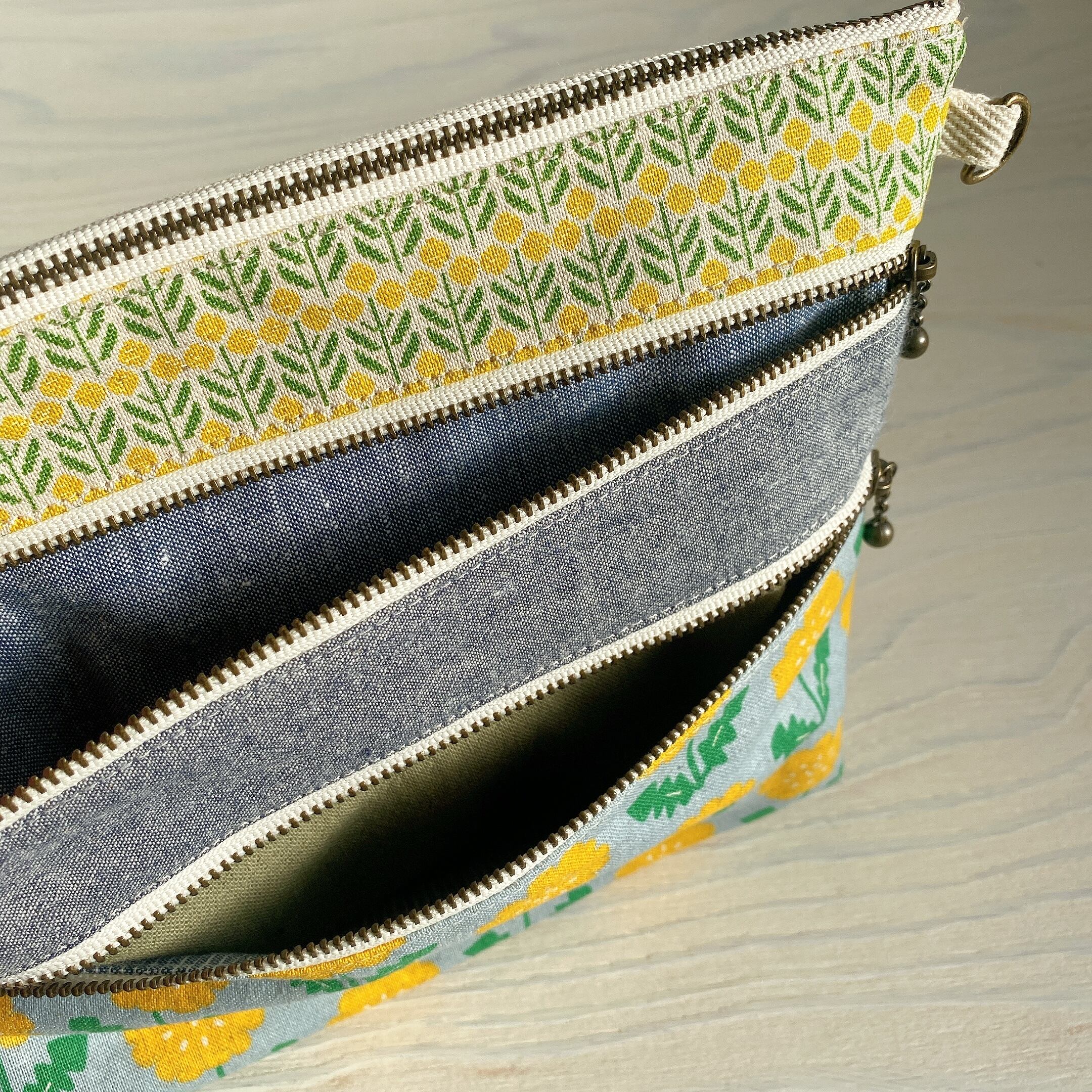 マチ付き3ファスナーポーチ*ポシェットにも♪(タンポポ)