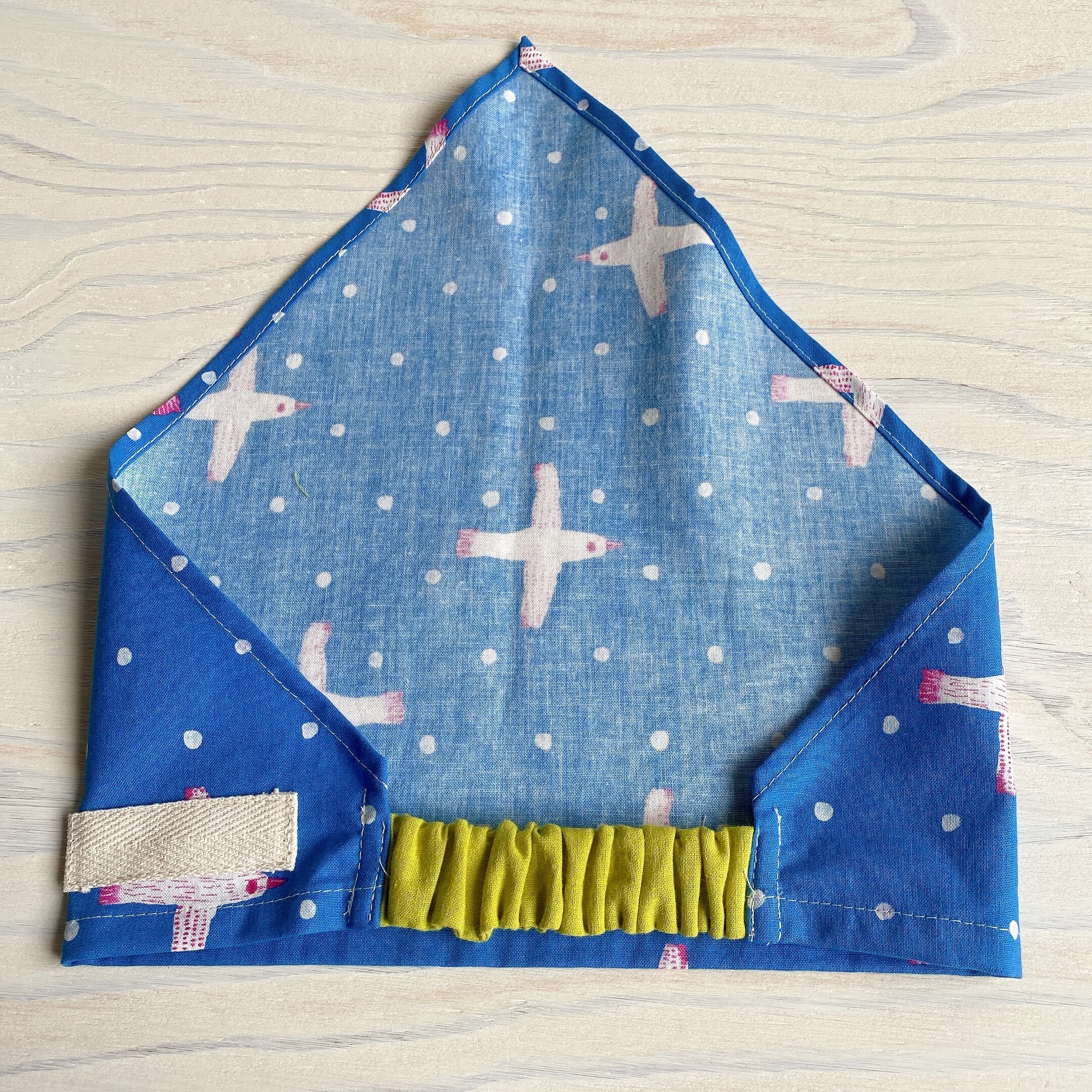 エプロンの後ろはシュシュのようにゴムを入れています。