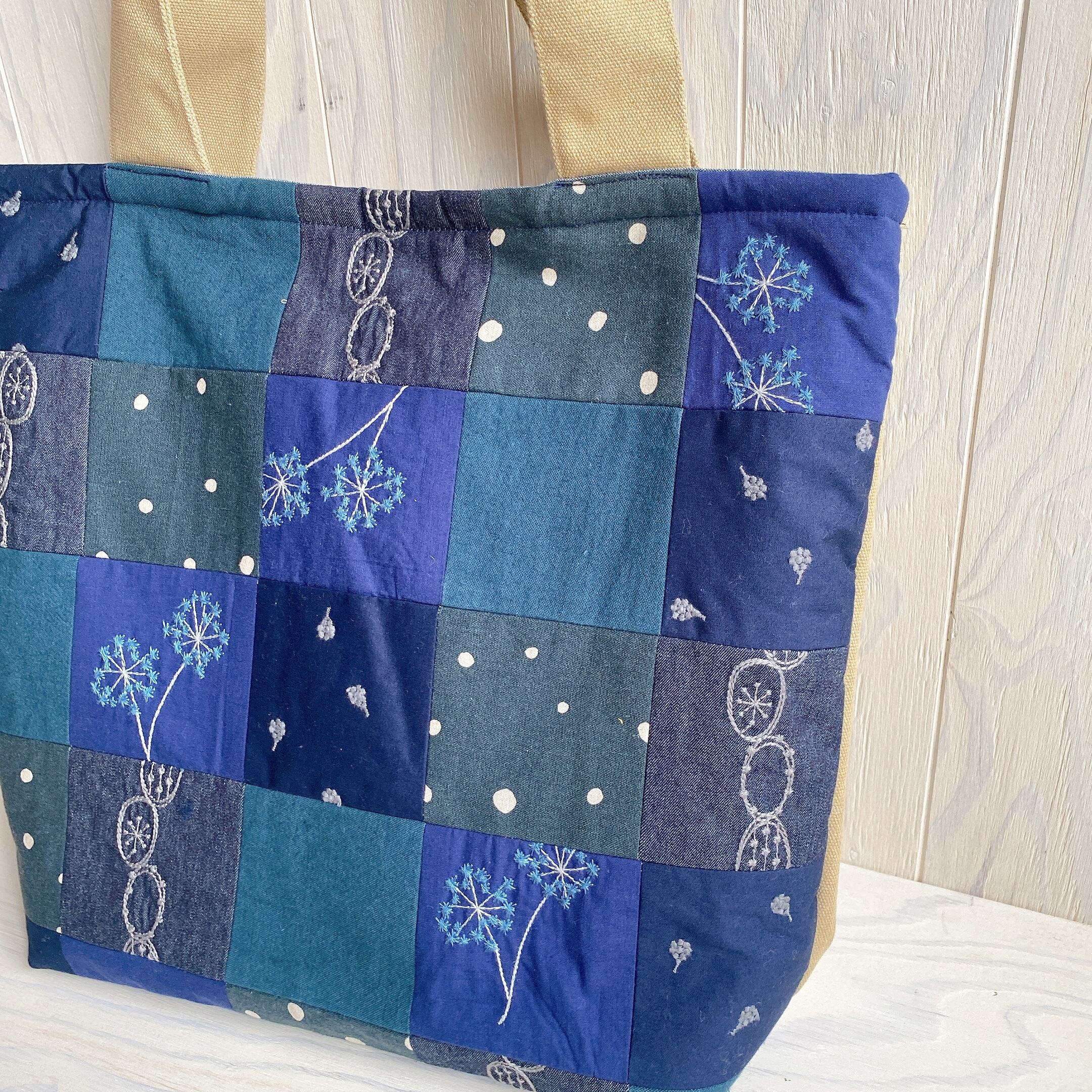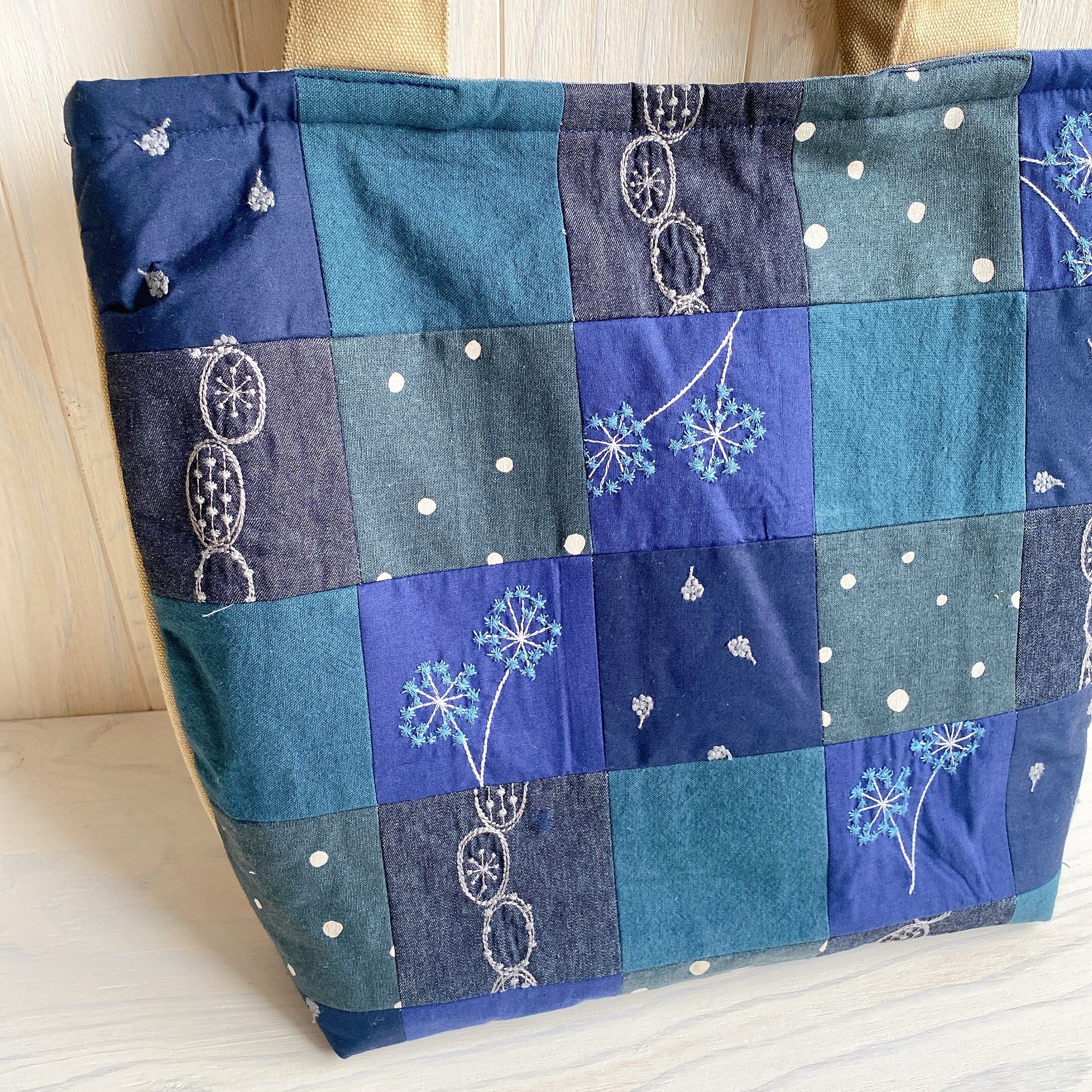 パッチワークの大き目トートバック(ネイビー刺繍mix)