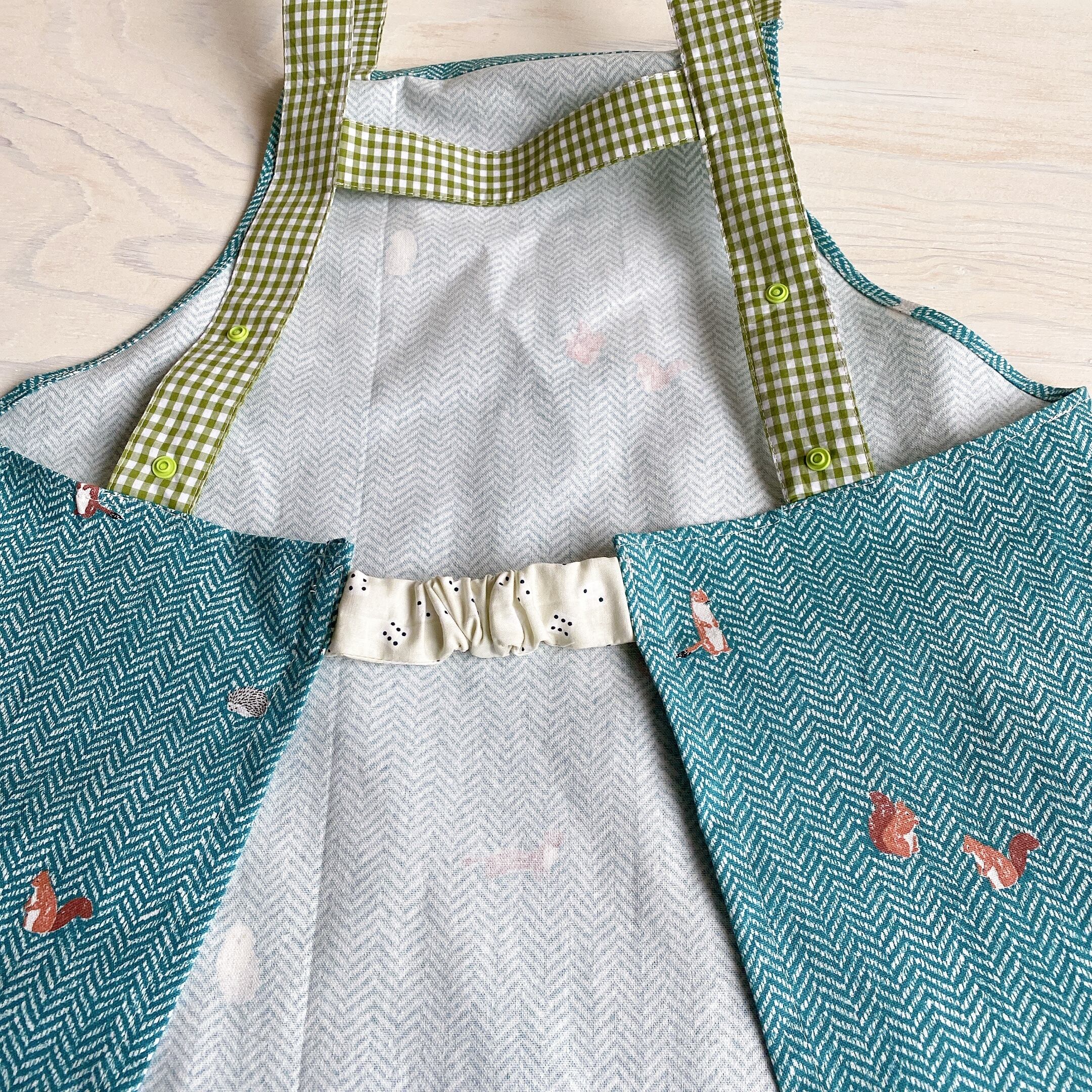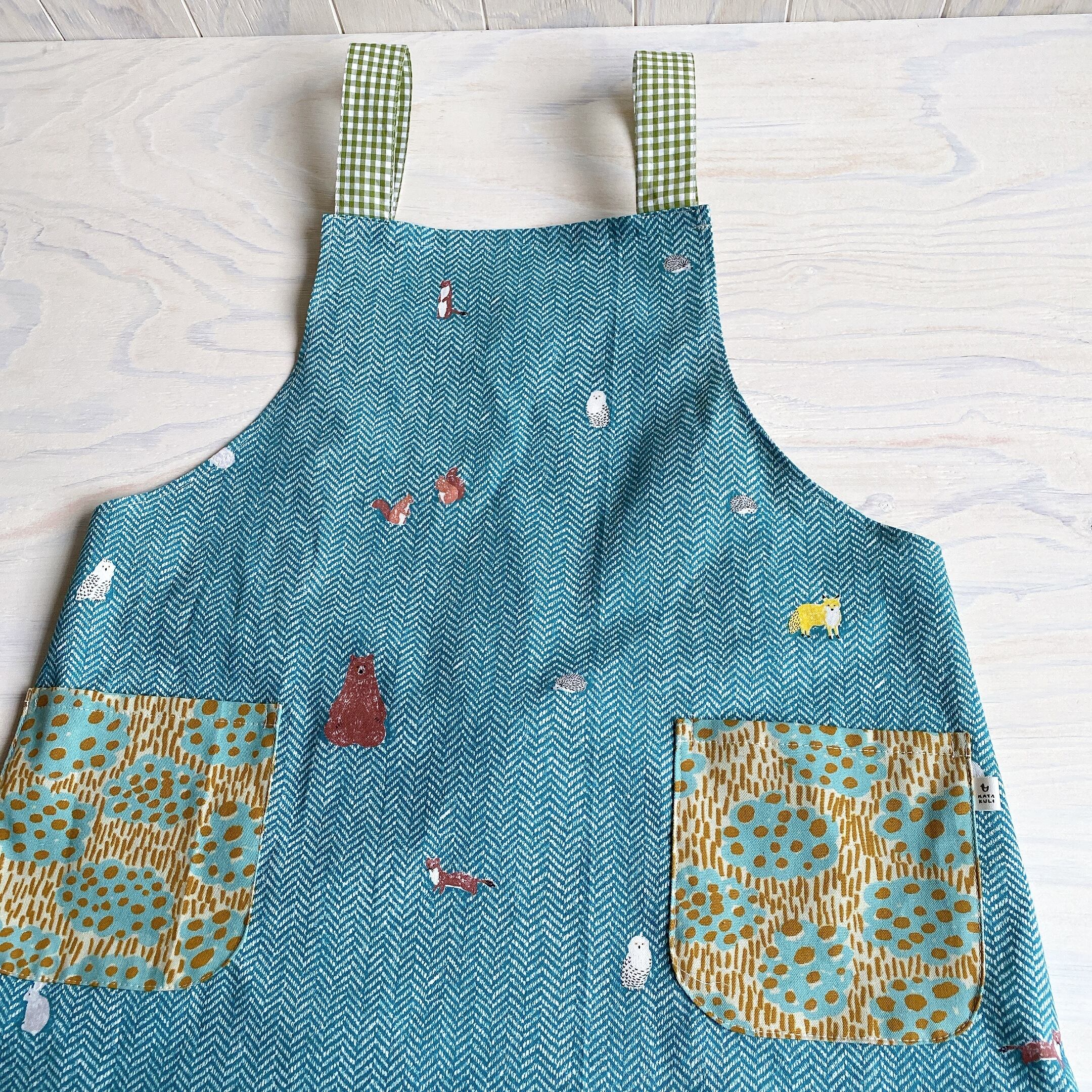 と思い、お年頃な高学年さんに気に入ってもらえそうな生地でエプロンを作りました。