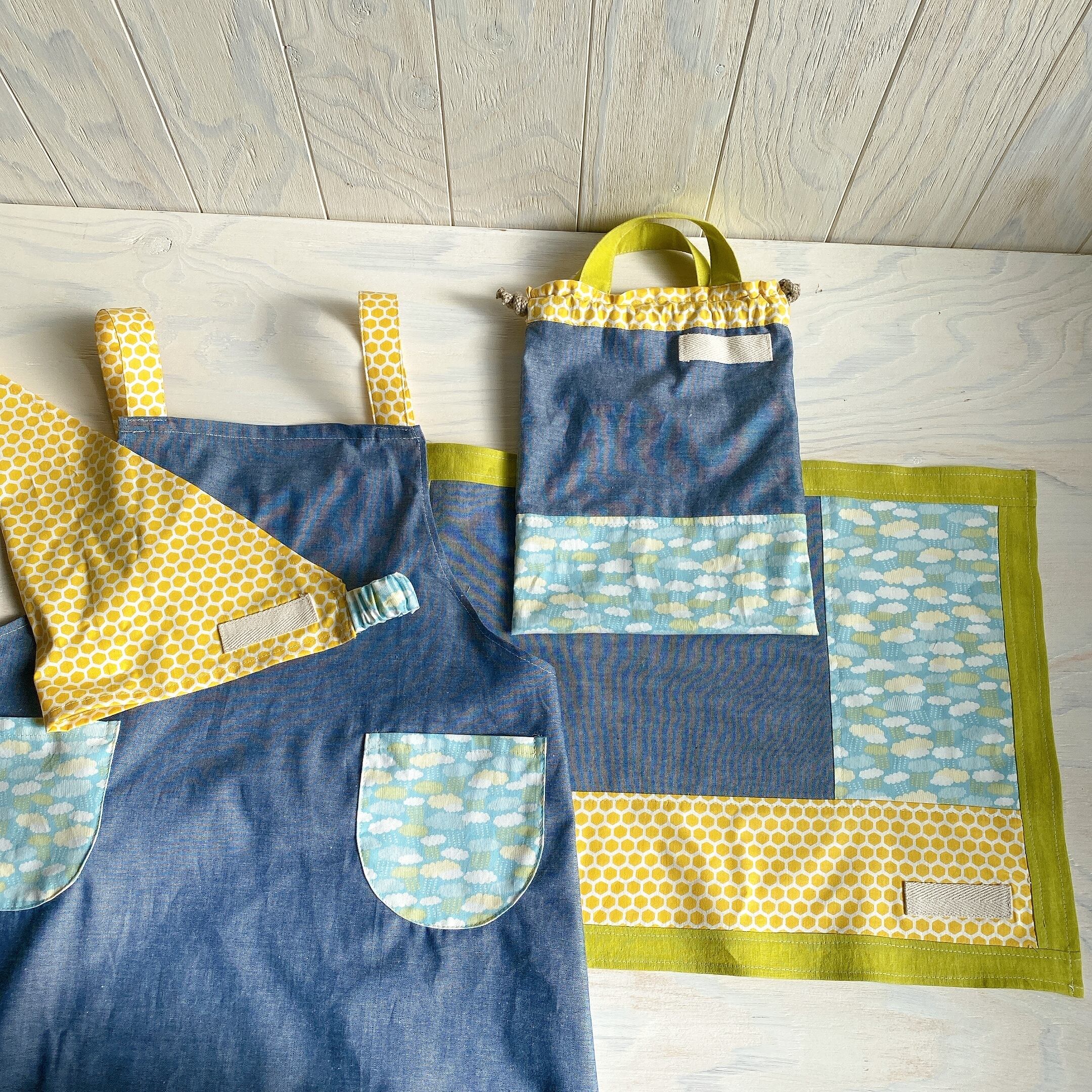低学年さんにちょうど良いサイズのエプロンセットです。