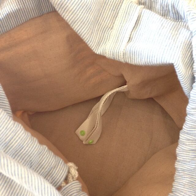 中身が飛び出さないように巾着をつけましたので