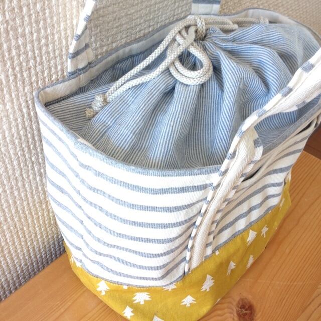 巾着付きトートバック*タンブラーベルト付き♪(ツリー。マスタード)