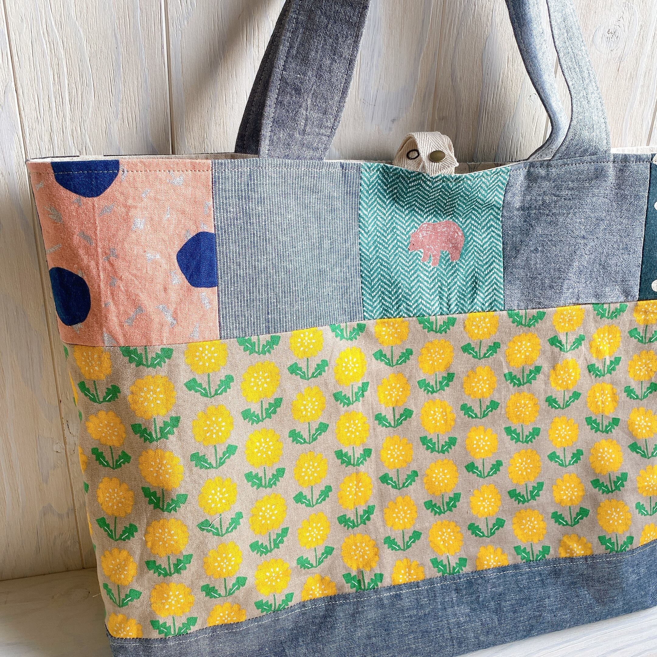 大容量!つぎはぎ布バック(たんぽぽ)