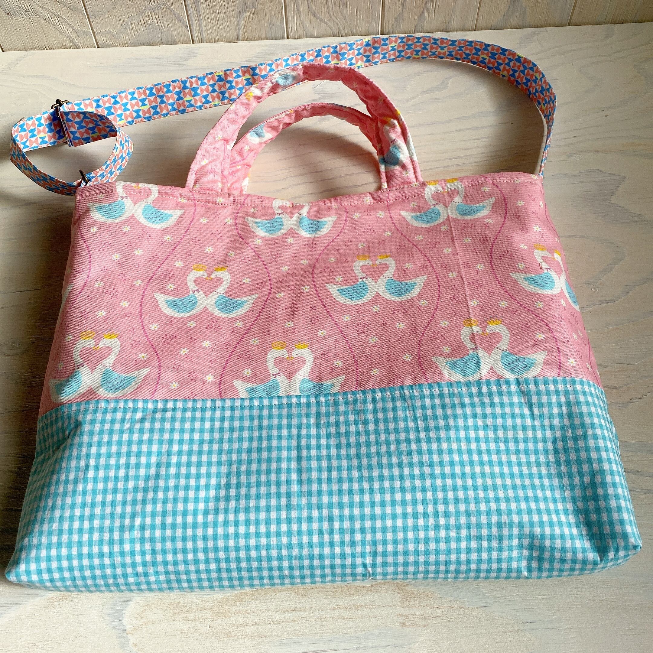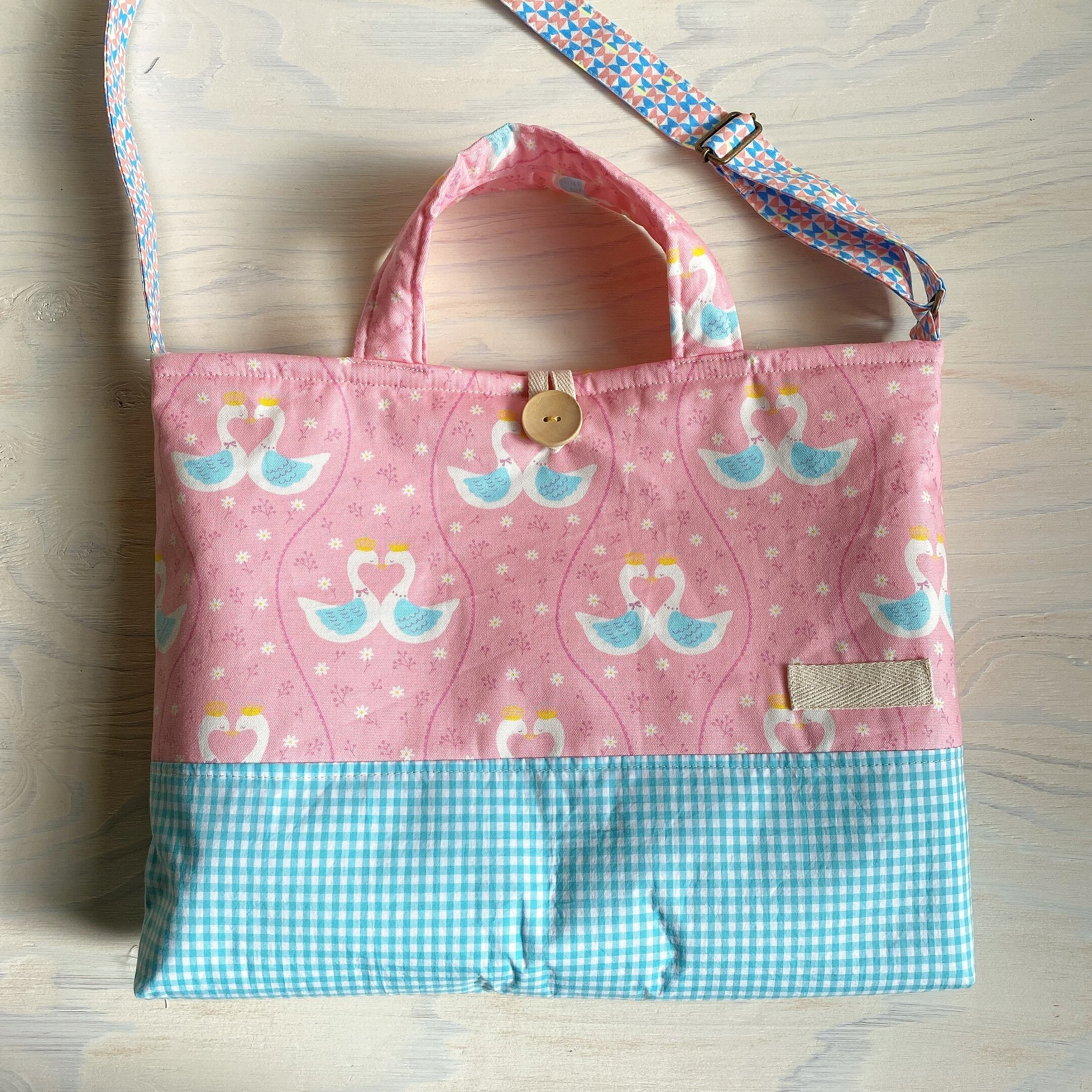 【オーダーのお品】ふんわり♪肩ひも付き布合わせレッスンバック(あひる)
