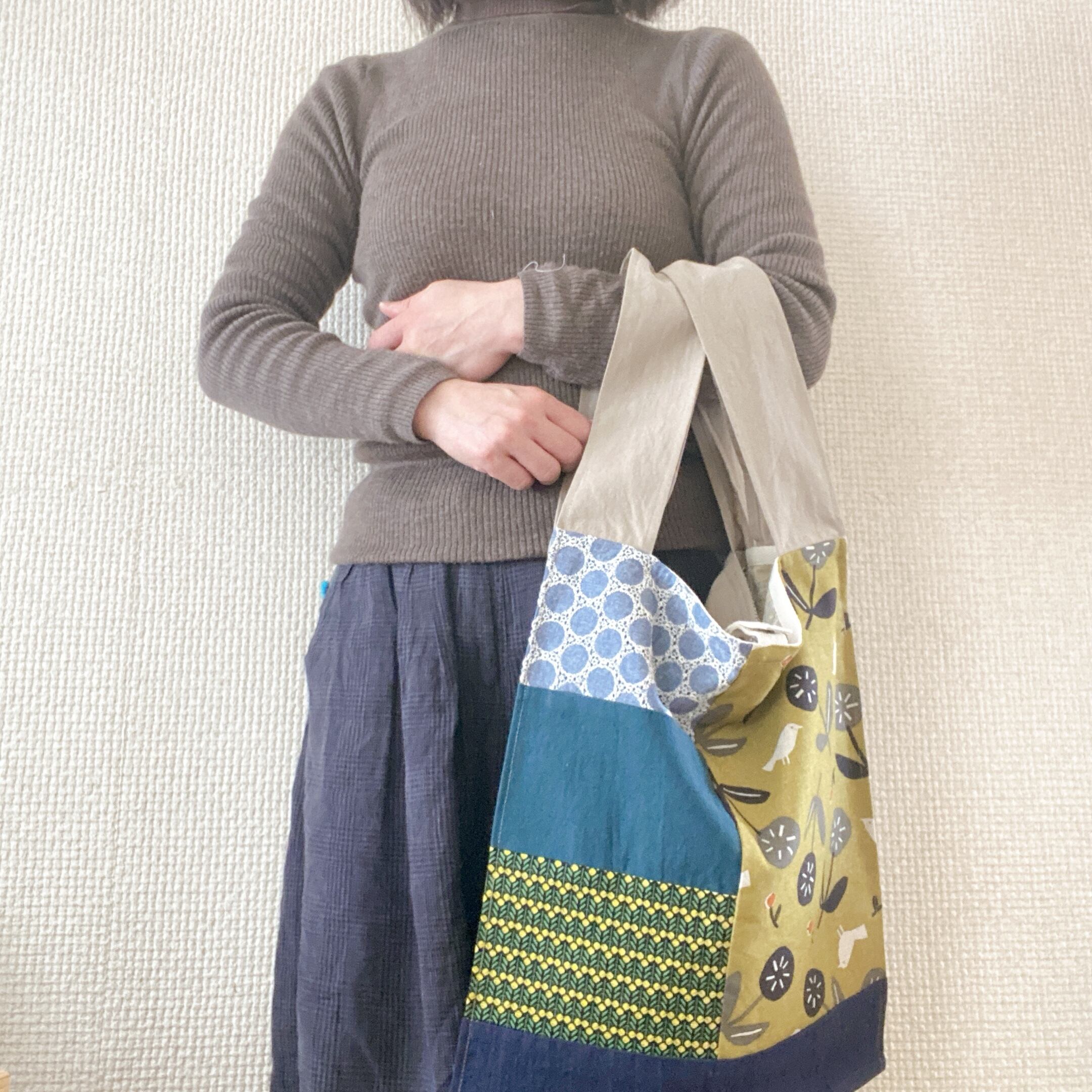 大き目サイズのつぎはぎエコバック(バード・カラシ)