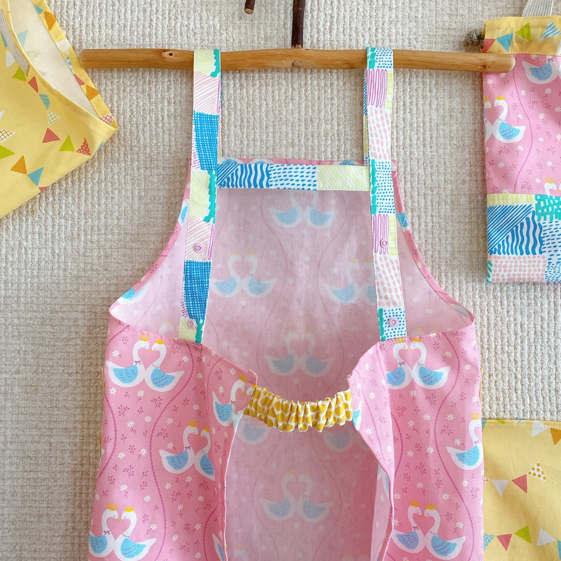 低学年さんにちょうど良いサイズのエプロンセットです。