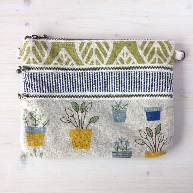 ポシェットにもなります*3ファスナーポーチ(花壇×花瓶)