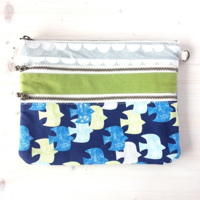 ポシェットにもなります*3ファスナーポーチ(ツバメ×ツリー)