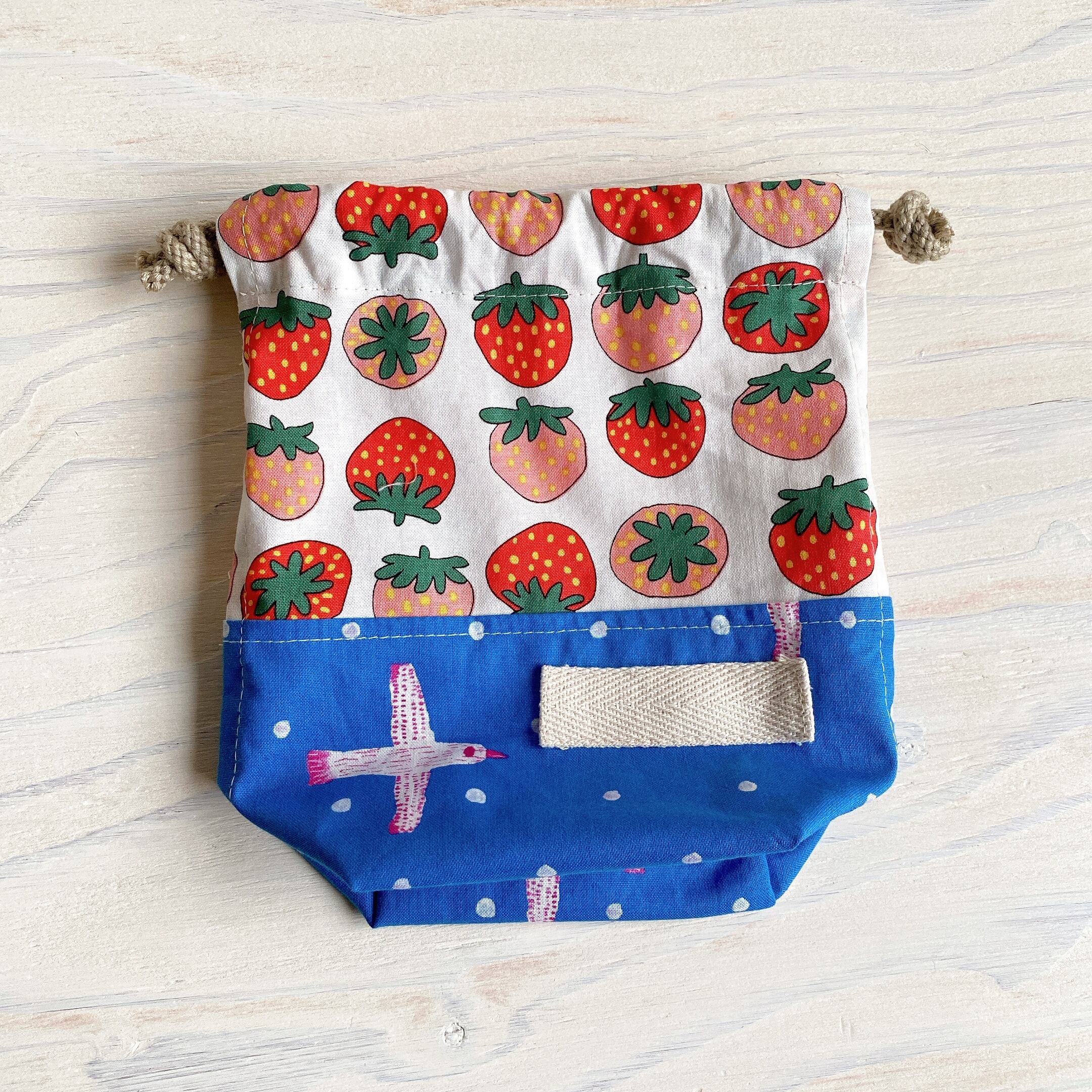 【オーダーのお品】園児のショルダーバック&コップ袋×2つ(イチゴ小鳥)