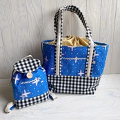 【オーダーのお品】巾着付きトートバック&ベビーリュック&お着替え袋&お弁当巾着(バード)