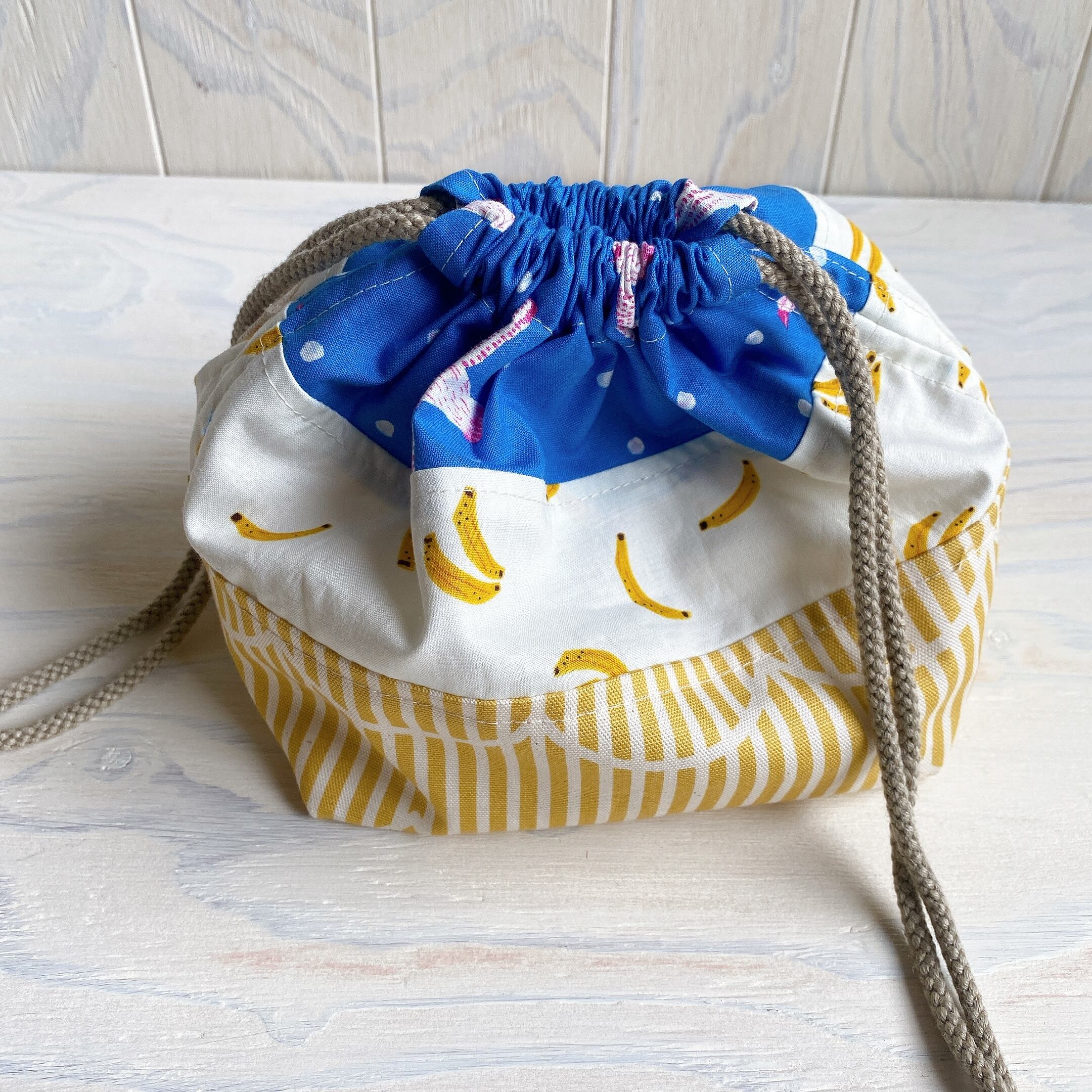 中身が飛び出さないように巾着をつけましたので安心してお使いいただけます。