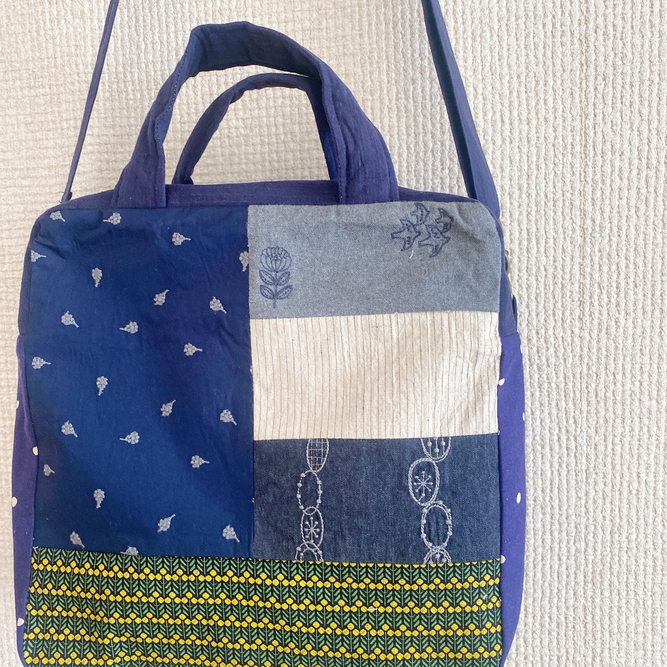 内ポケットがたくさん!大きなつぎはぎ2wayバック(ミモザ①)