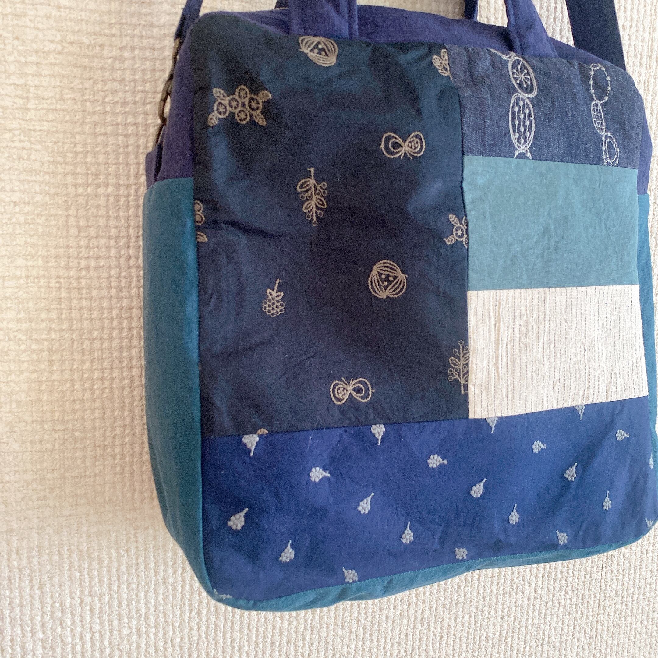 内ポケットがたくさん!大きなつぎはぎ2wayバック(ネイビーmix)