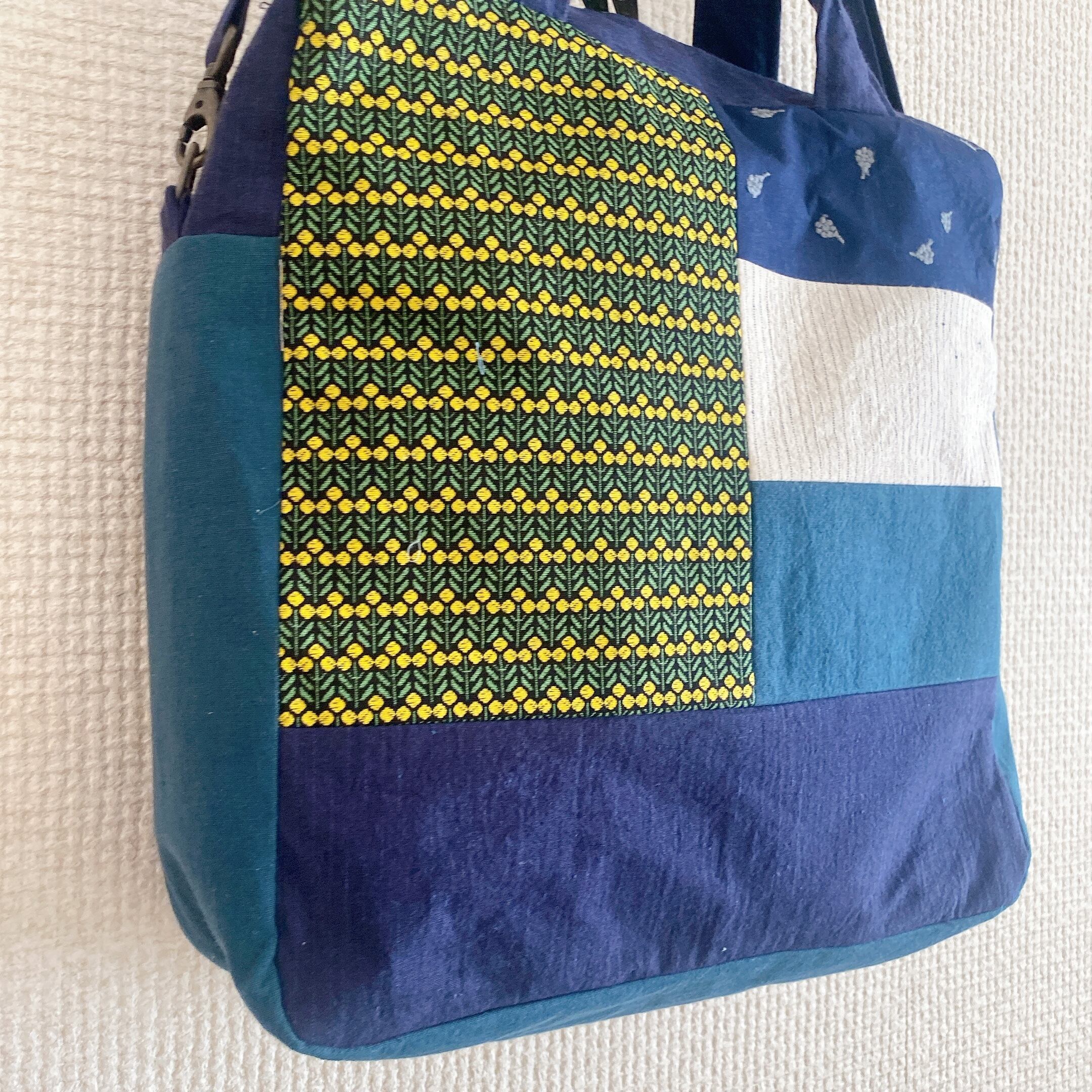 内ポケットがたくさん!大きなつぎはぎ2wayバック(ミモザ②)