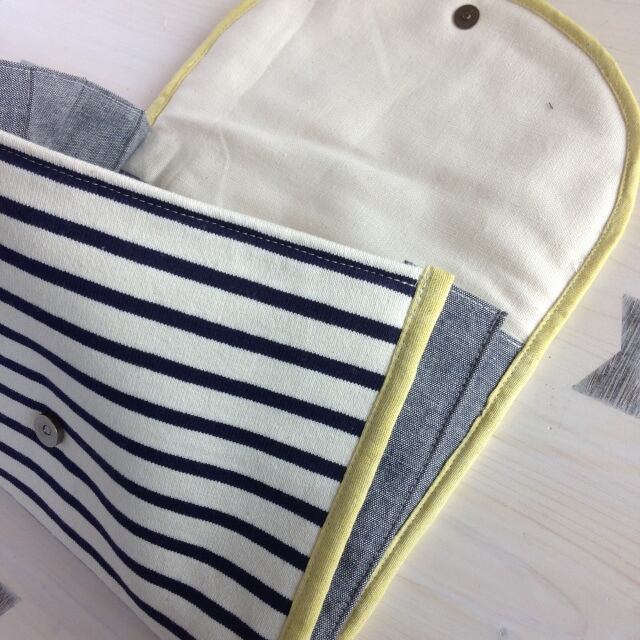 北欧風の布を使ってふんわりワタ入りのマルチケースを作りました。