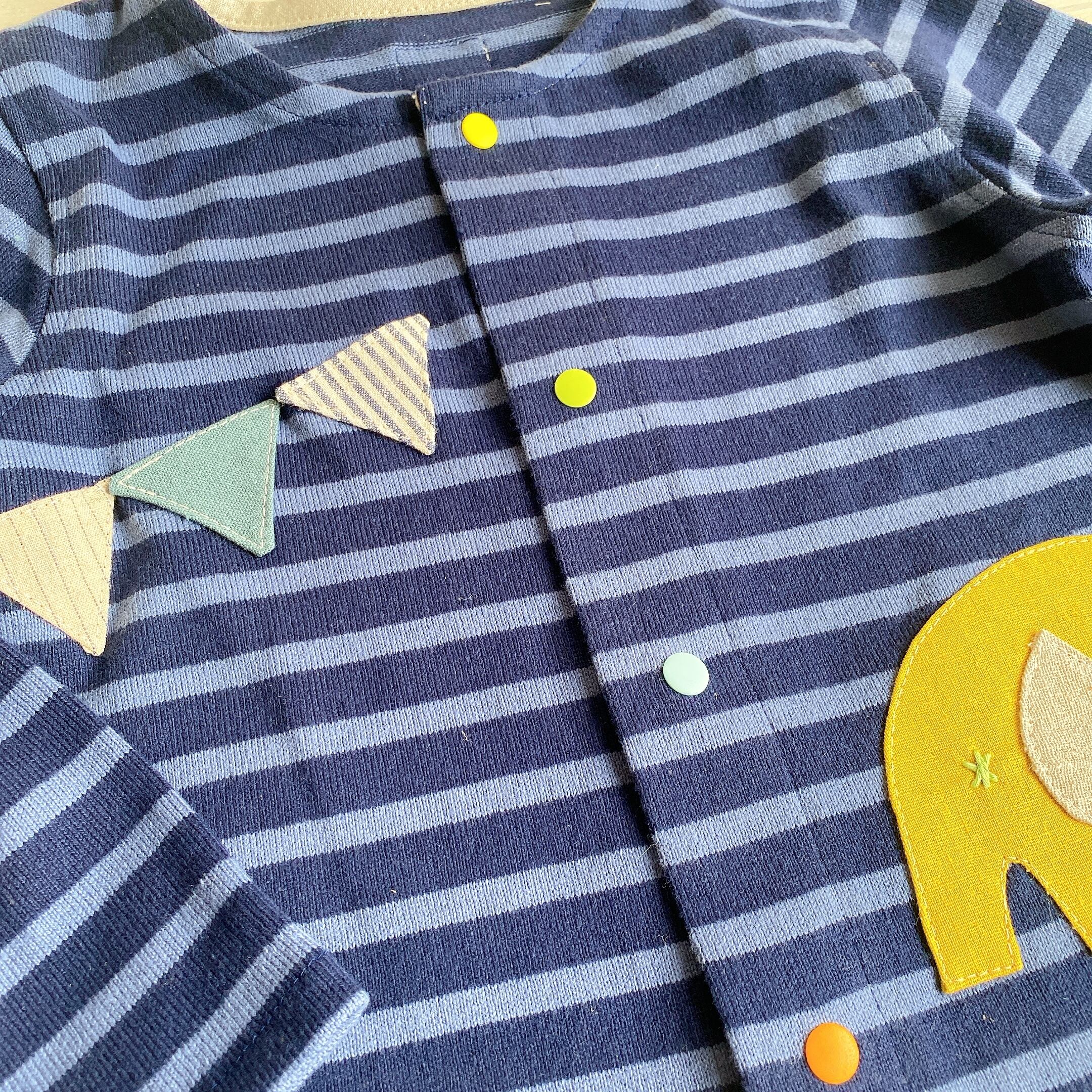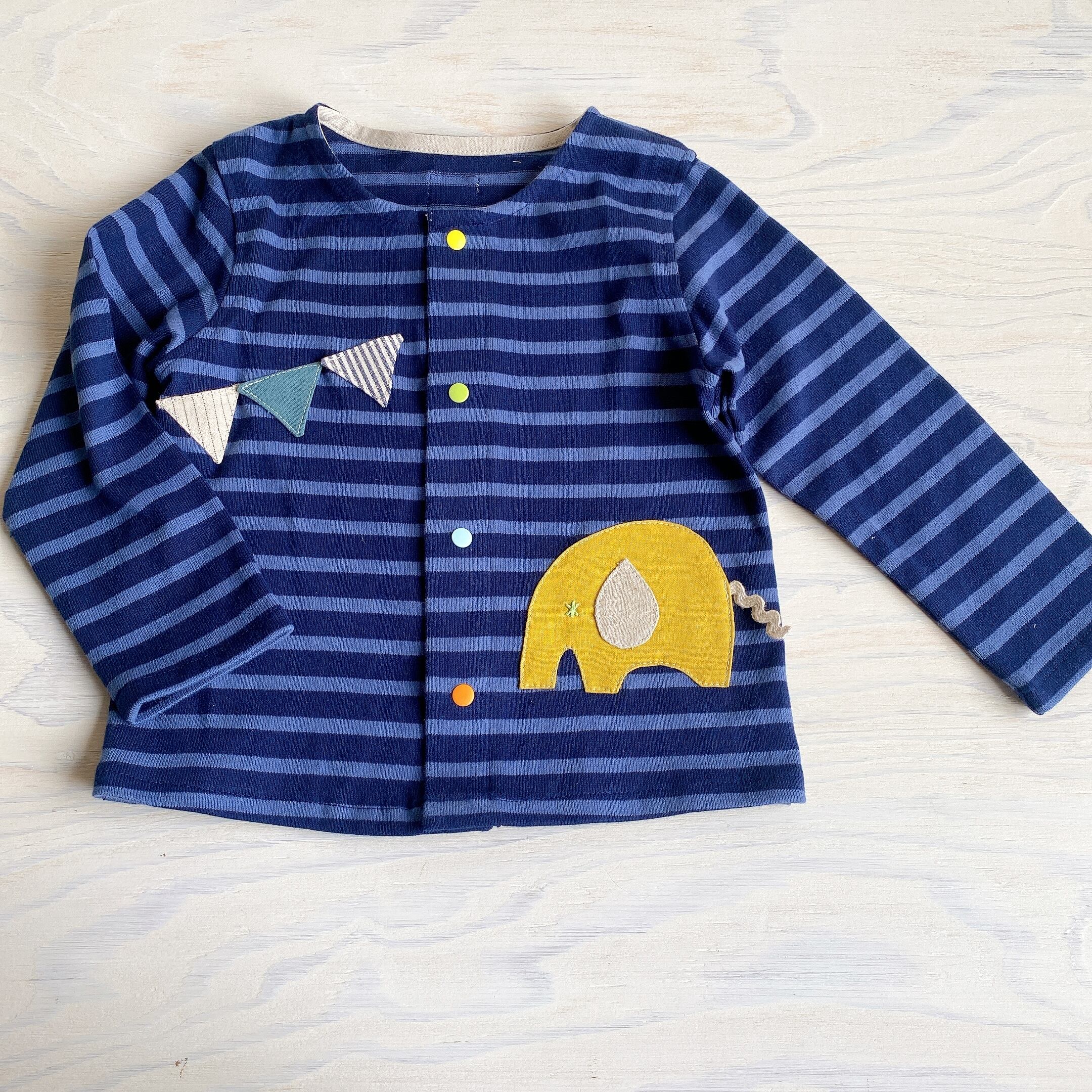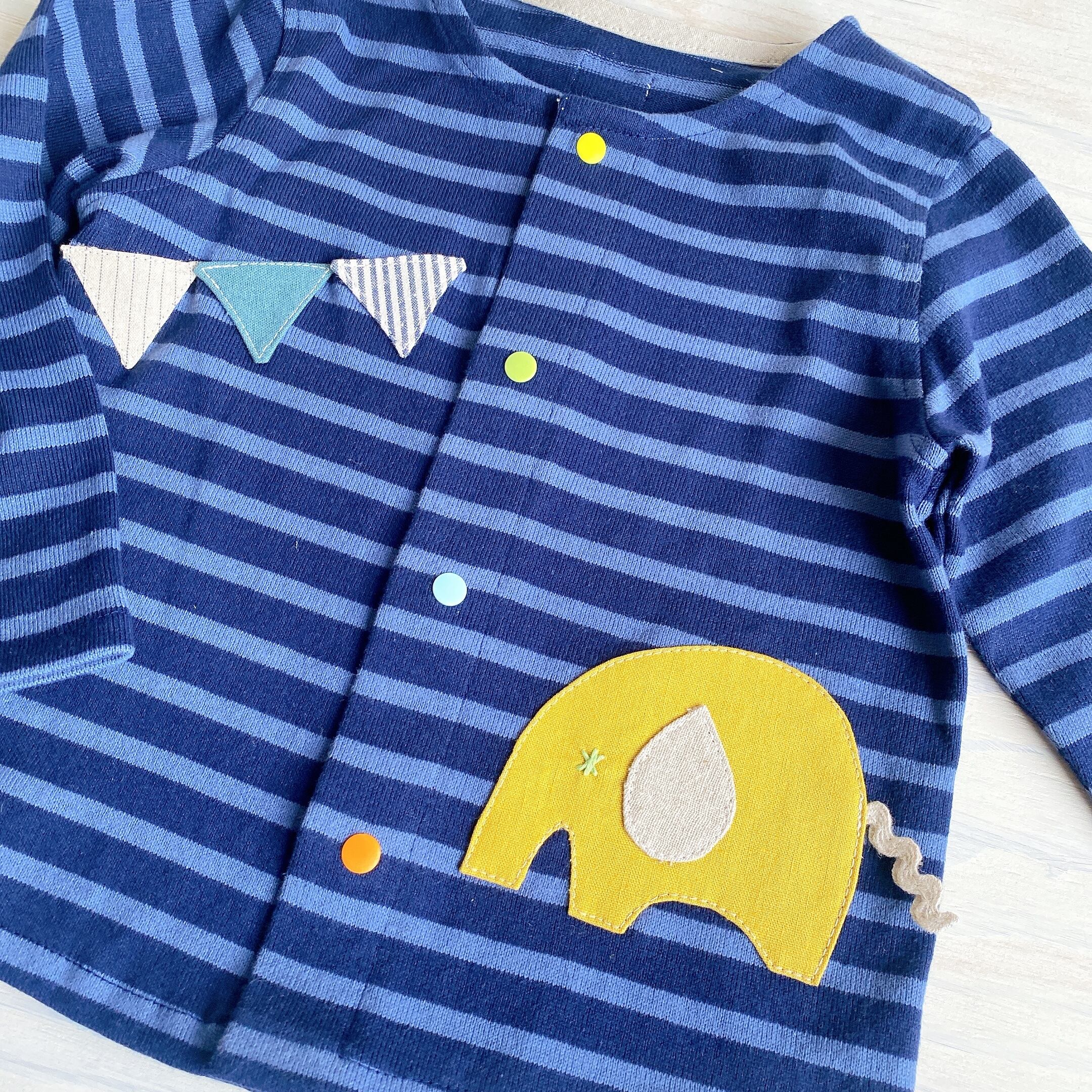 スナップボーダーカーディガン(アオ・ゾウ)★サイズ110