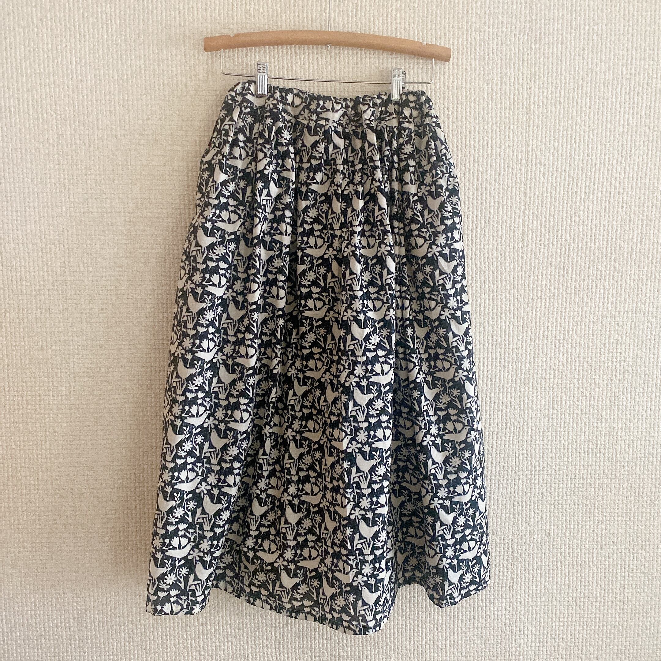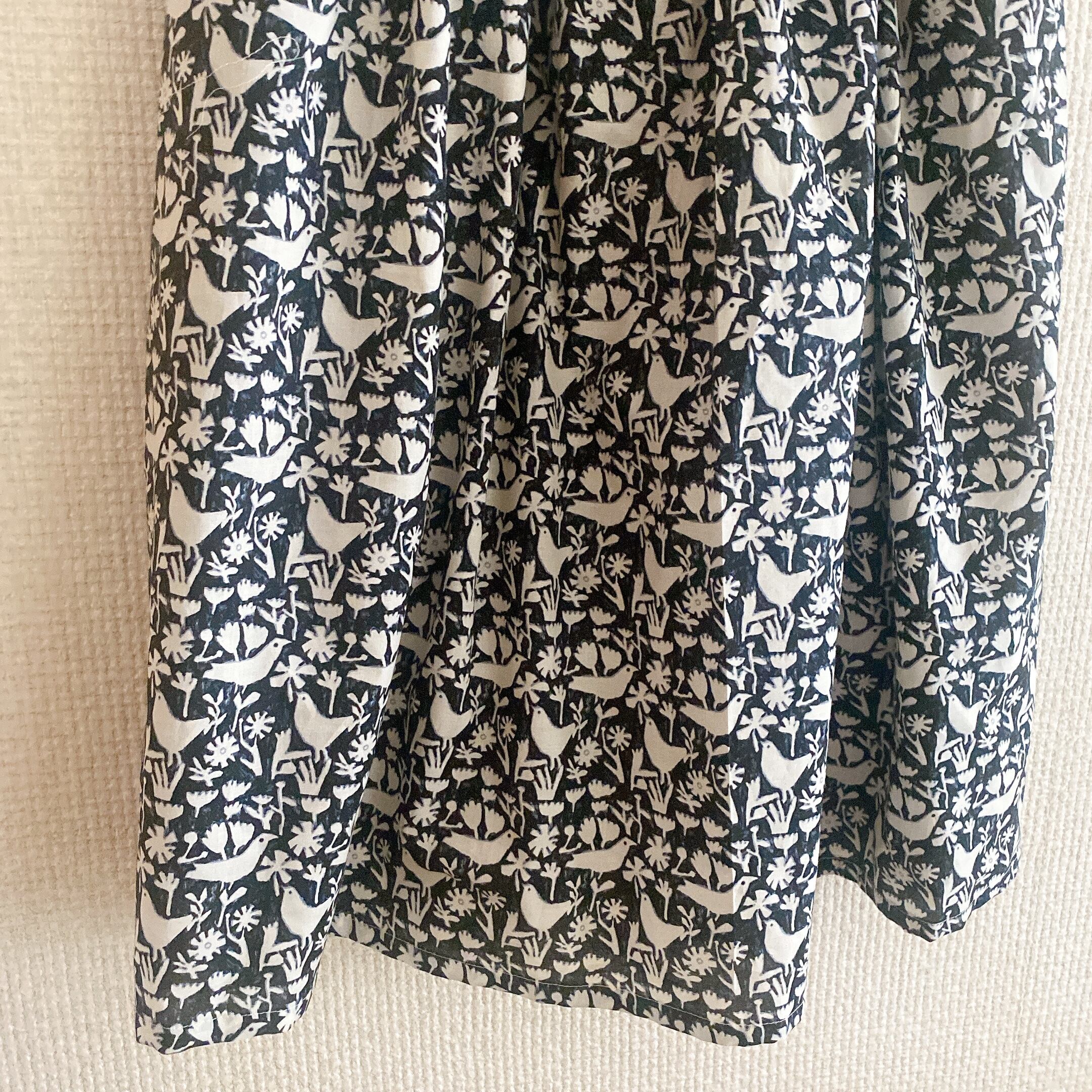 【オーダーのお品】ふんわりタックスカート(鳥とお花・クロ)
