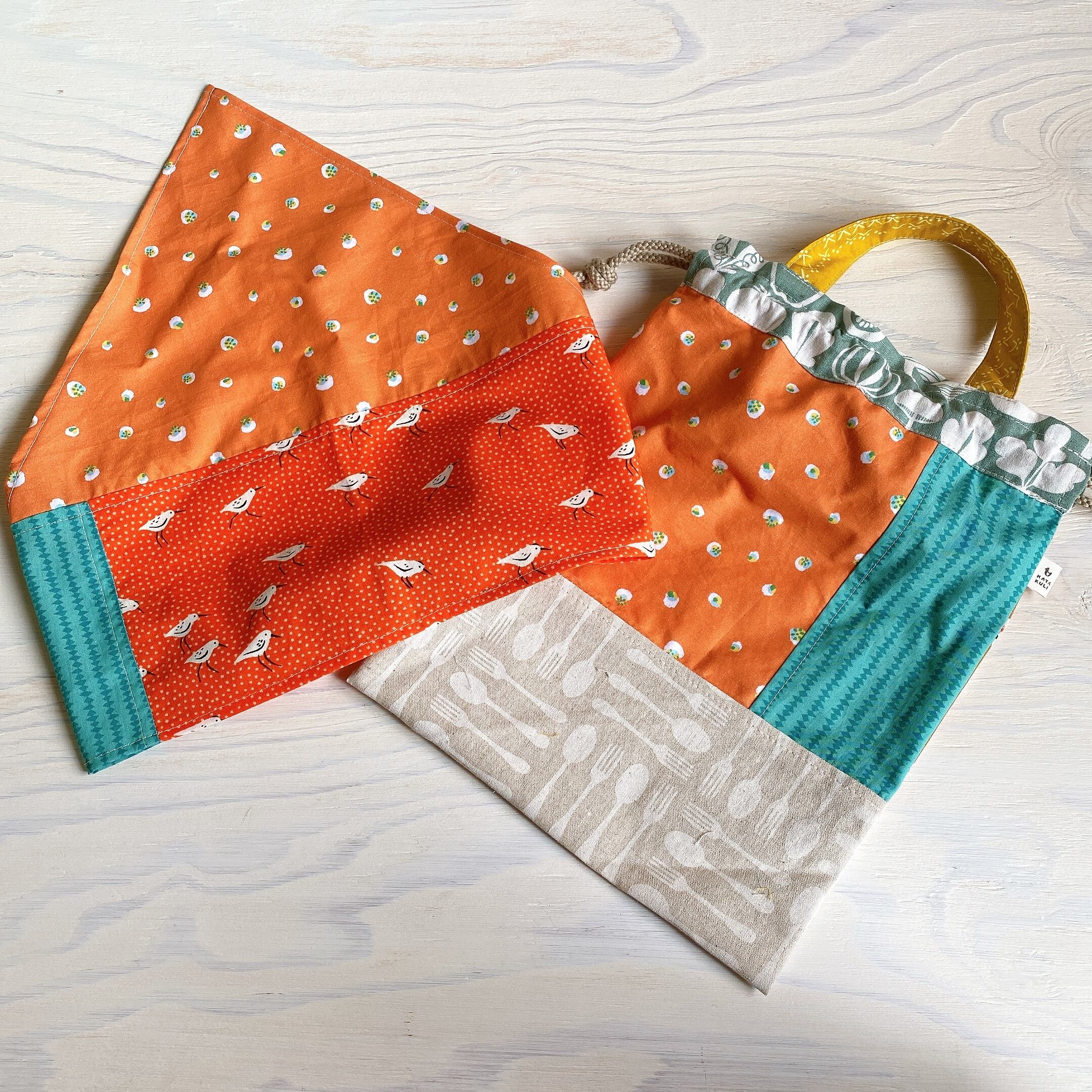 【オーダーのお品】三角巾と巾着(オレンジ)
