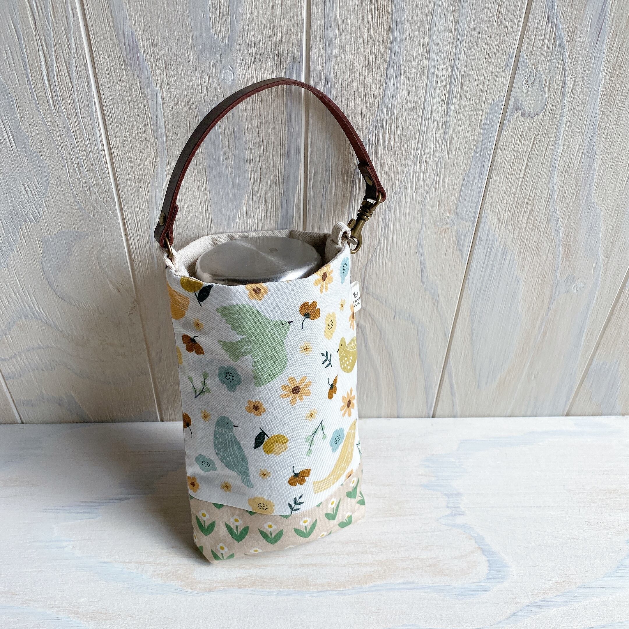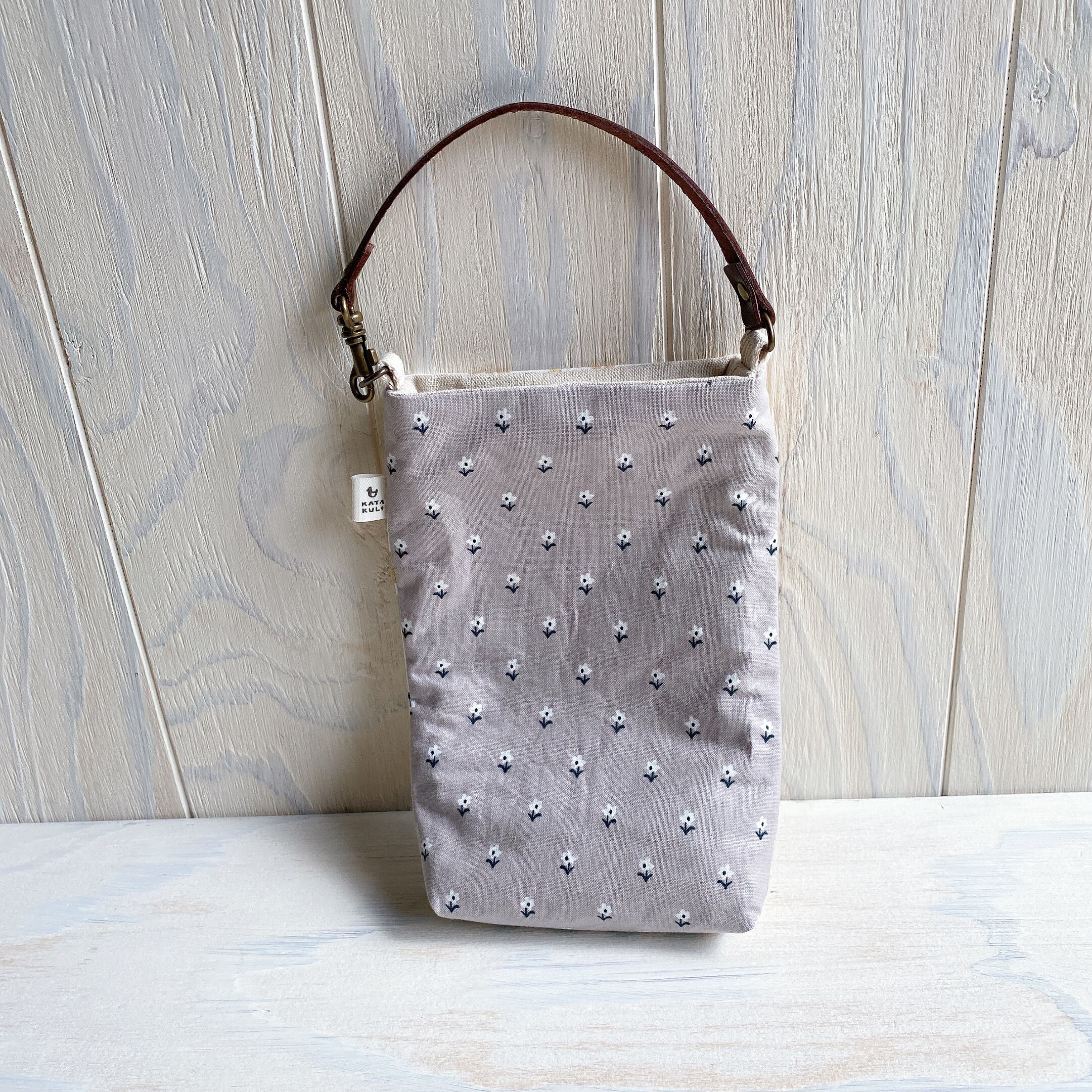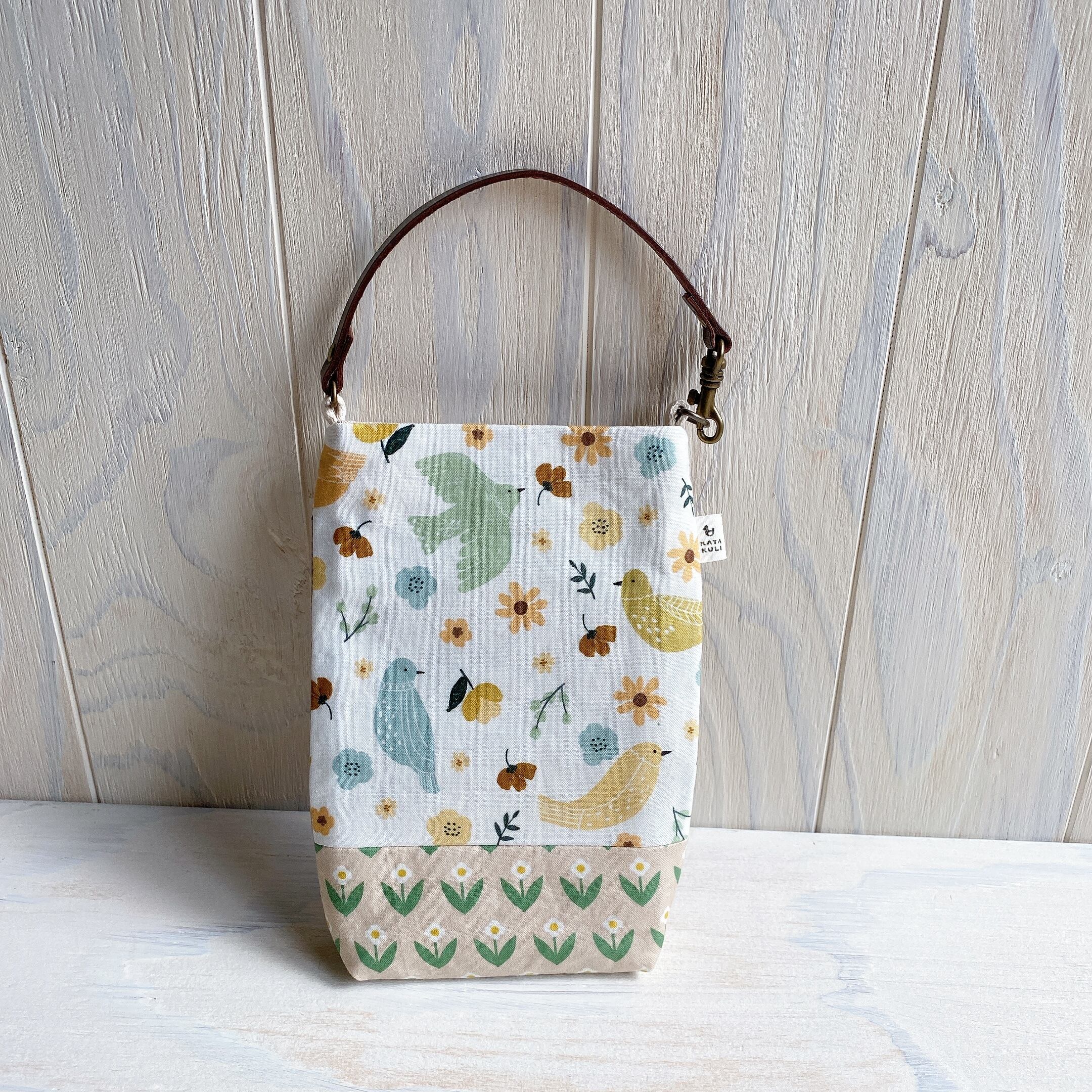 スマホポーチ(キナリに鳥と白い花)