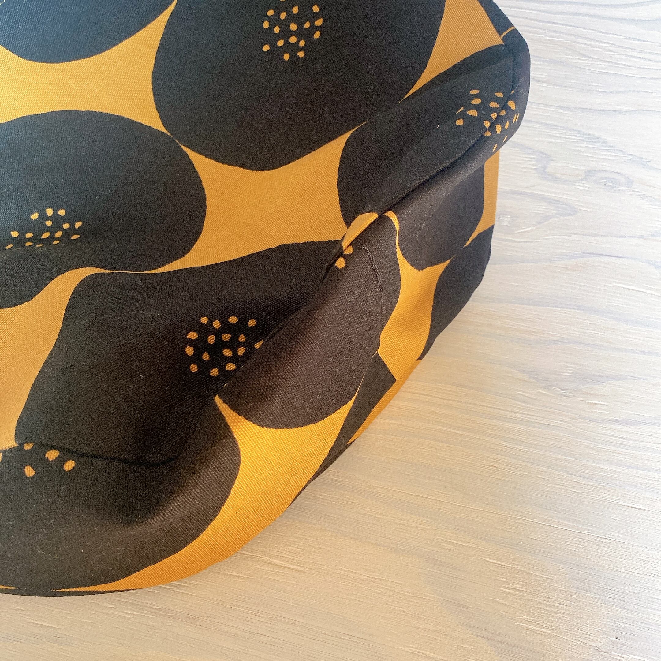ころんと丸いフォルム、アンパン柄の色味がとても素敵なバックです。
