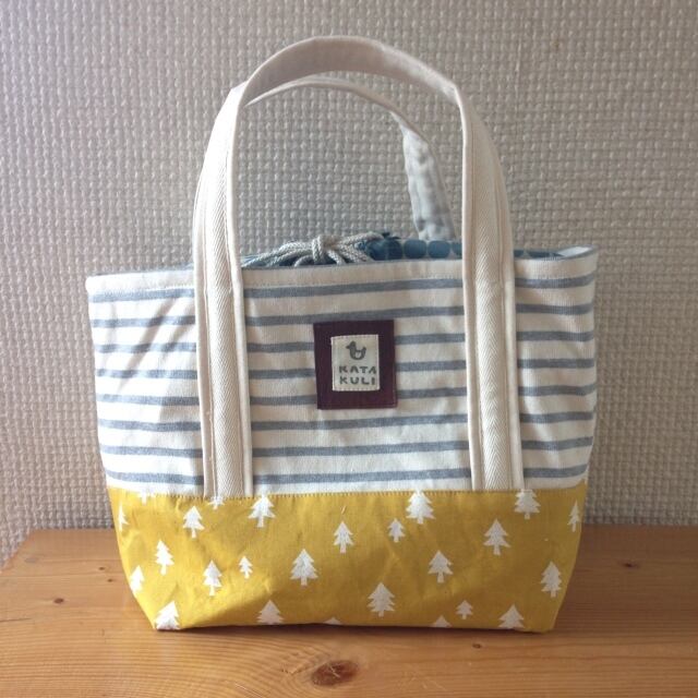巾着付きトートバック*タンブラーベルト付き♪(マスタード・ツリー)