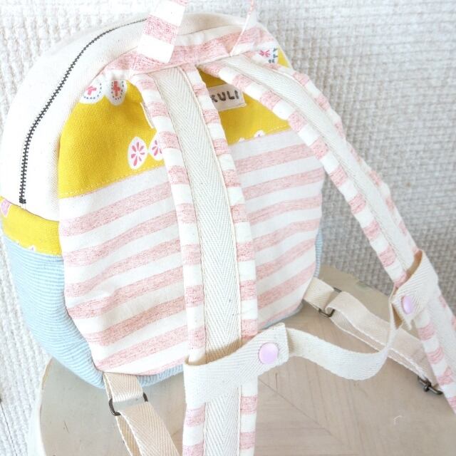 赤ちゃんファスナーリュック☆チェストストラップつき(ボーダー×リボン)