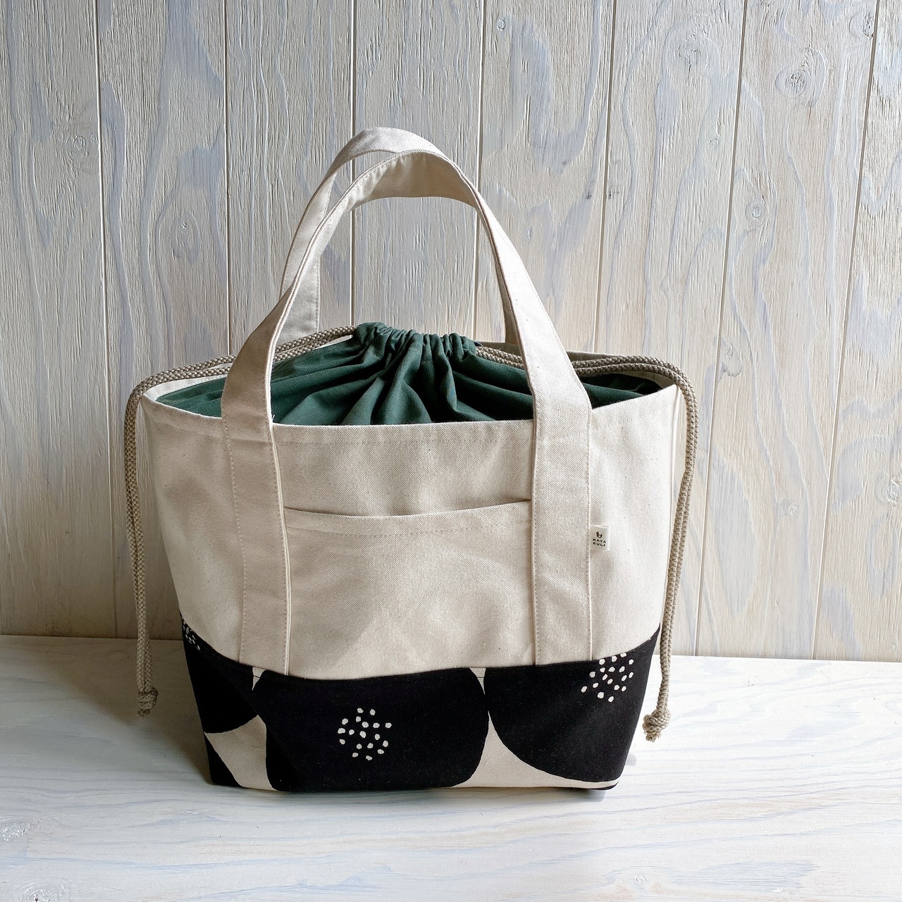 中身が飛び出さないように巾着をつけましたので安心してお使いいただけます。