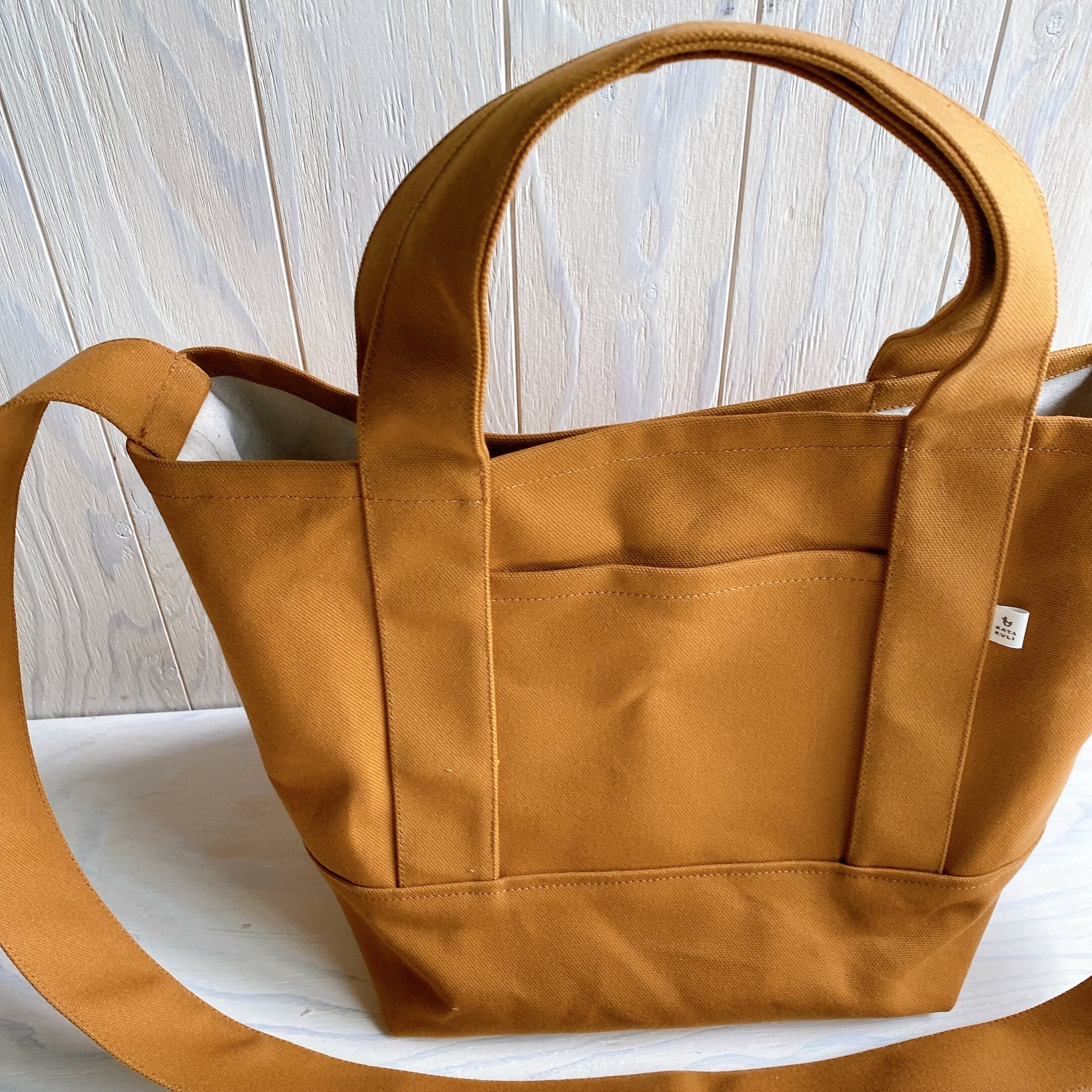 8号帆布のしっかり2wayトートバック大(キャメル)