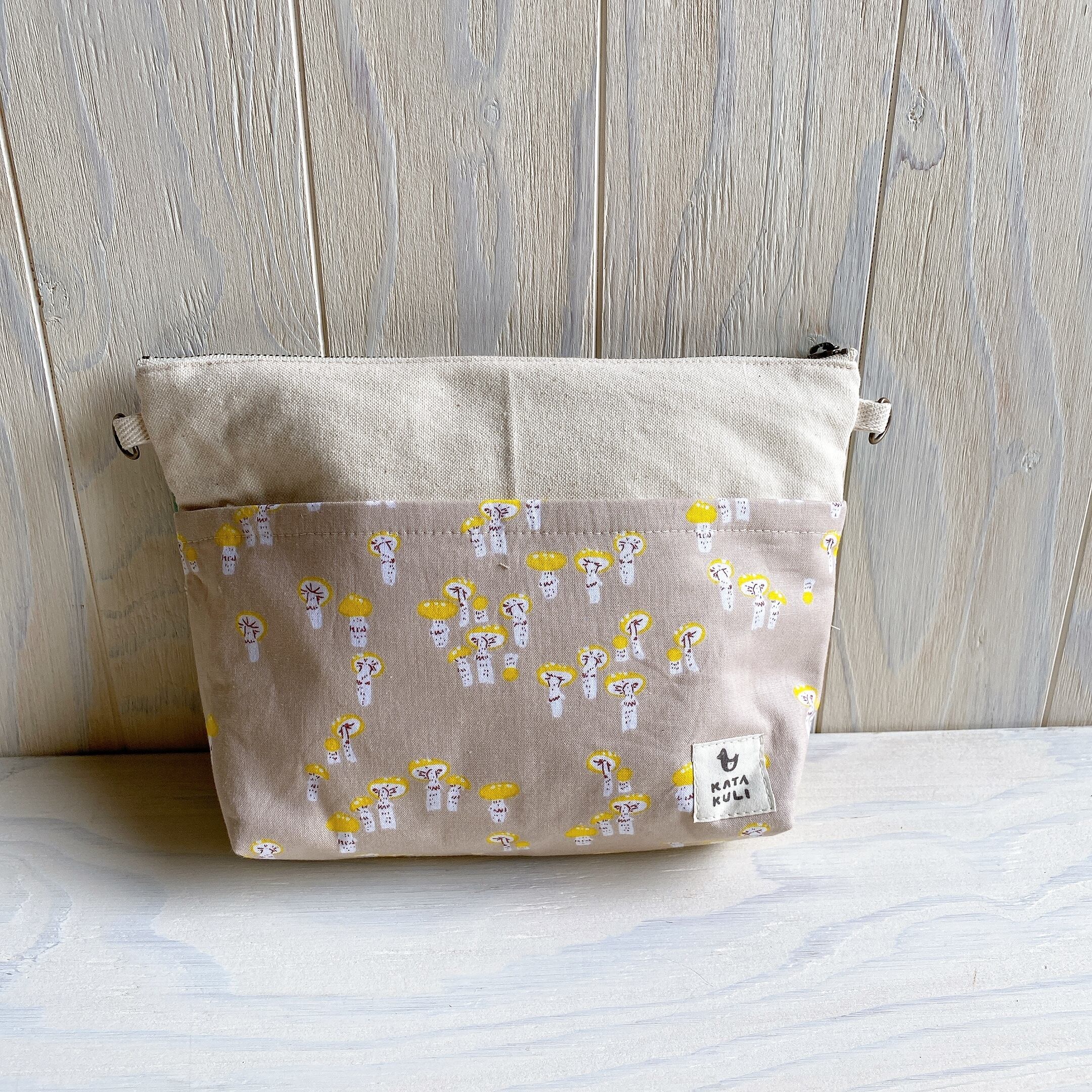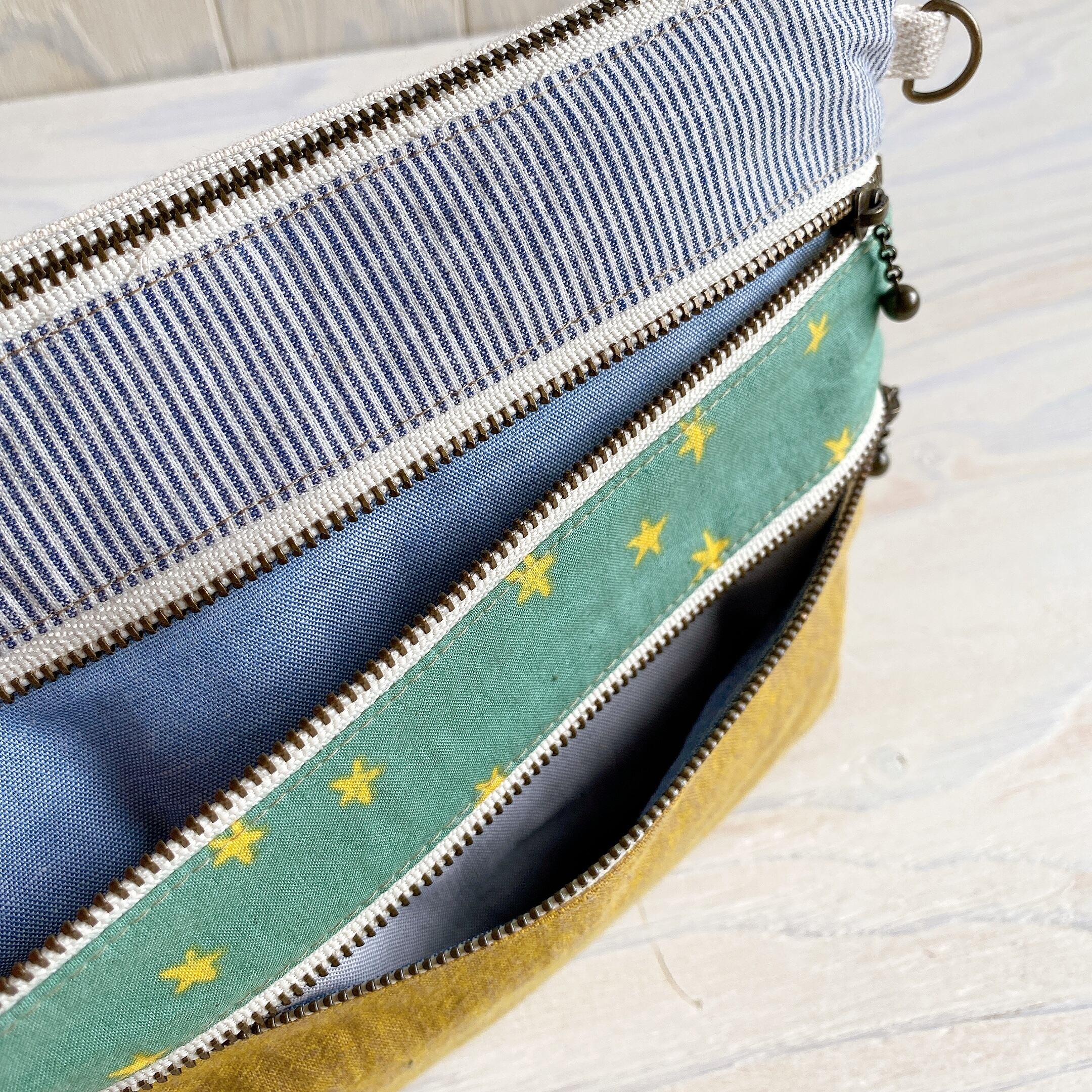 マチ付き3ファスナーポーチ*ポシェットにも♪(星ときのこ)