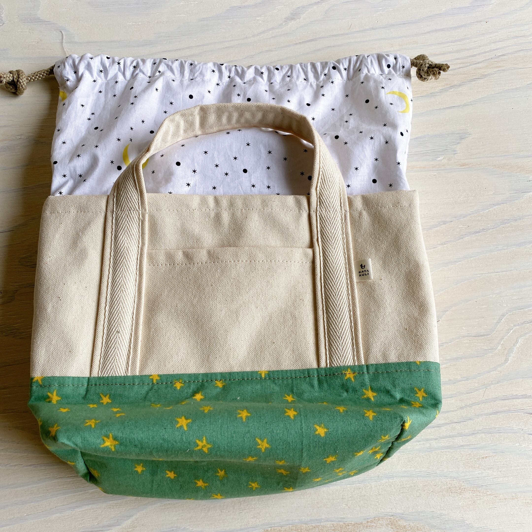 お弁当を入れたり、ちょっとそこまでの買物やお散歩にぴったりなトートバックです。