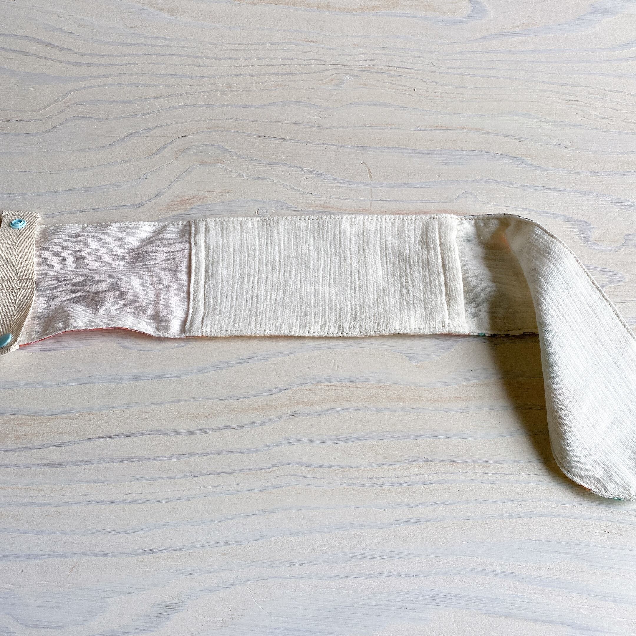 ポケットの素材はダブルガーゼと薄手の綿の生地を二枚重ねにしています。