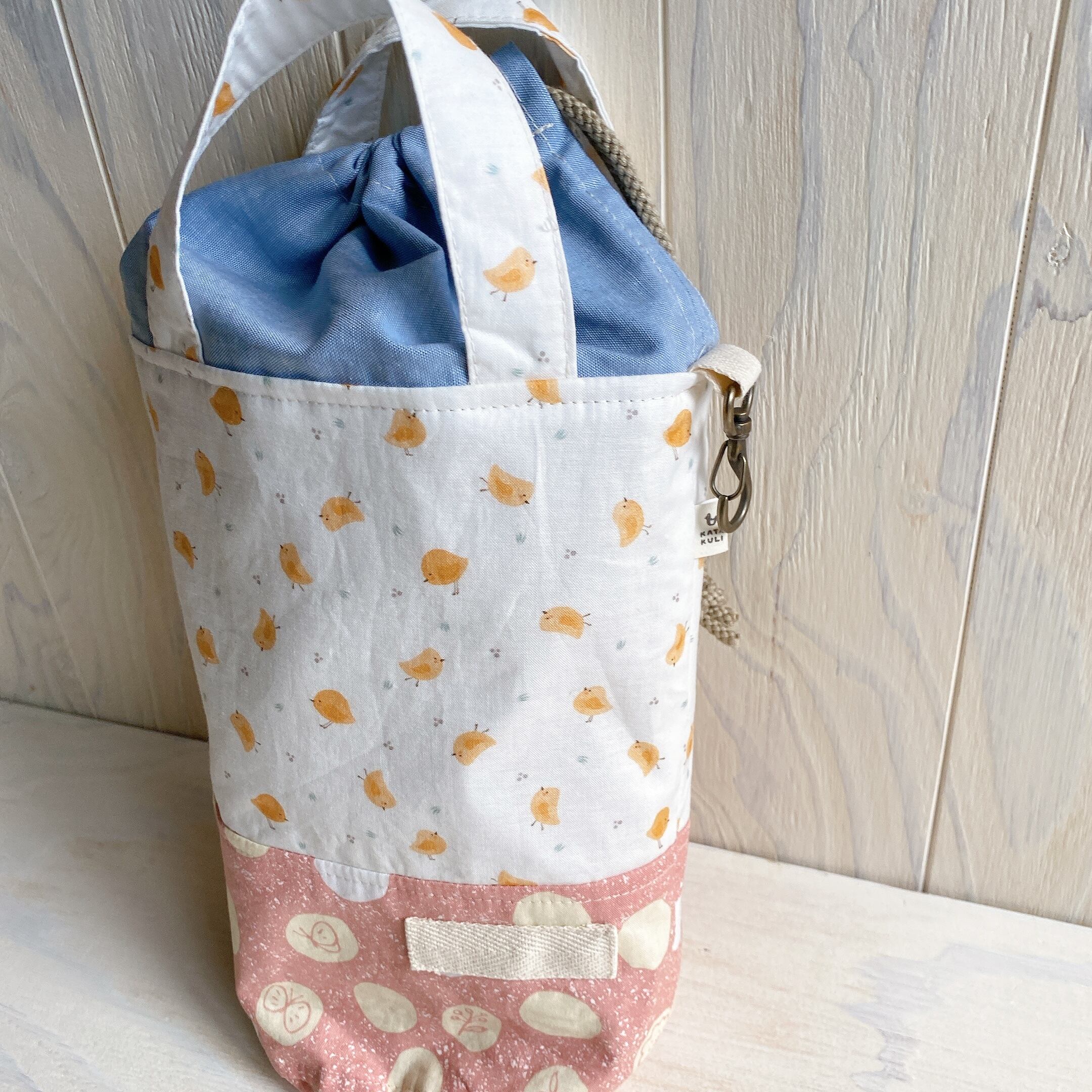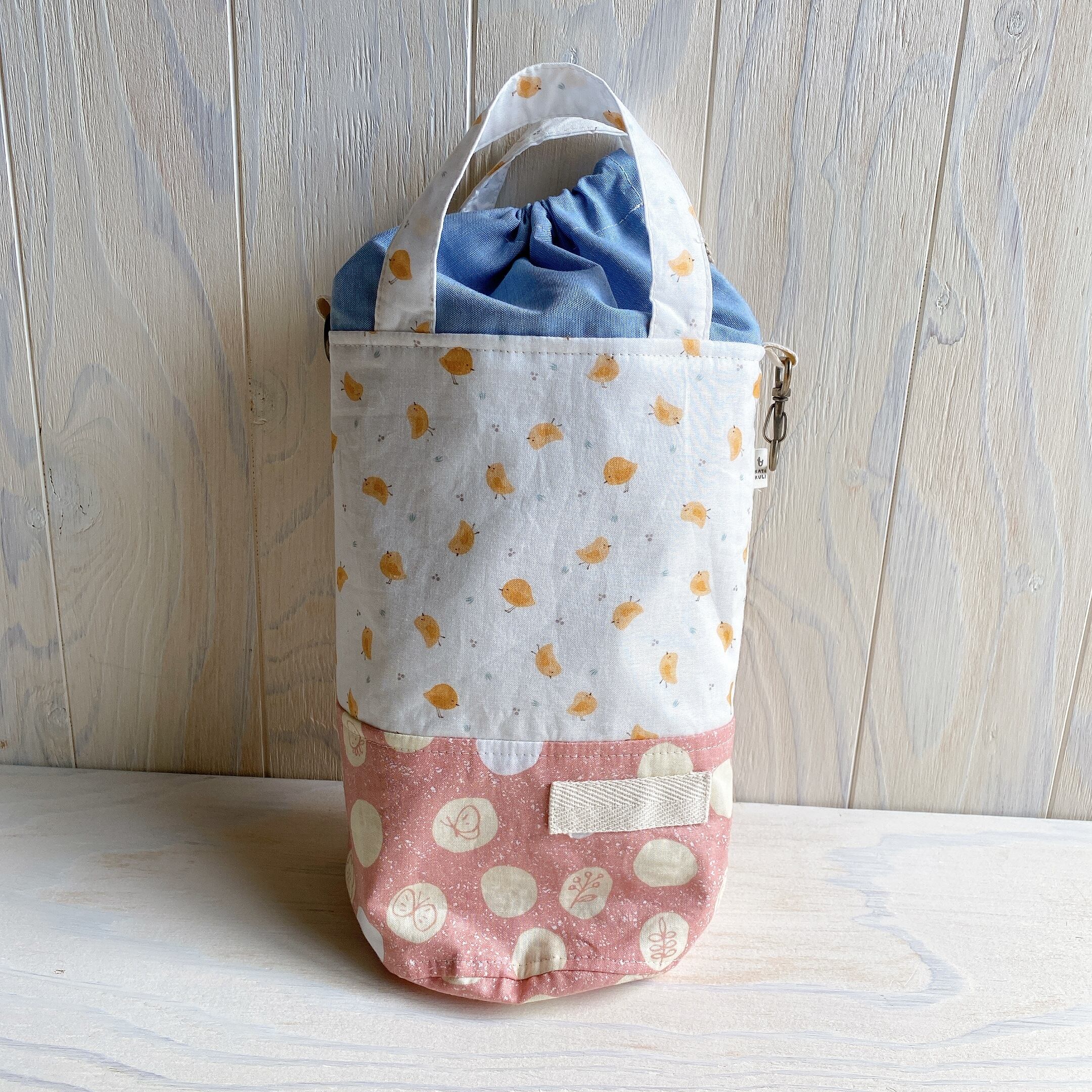 筒状の巾着付きバック*水筒入れに♪(ひよこ)