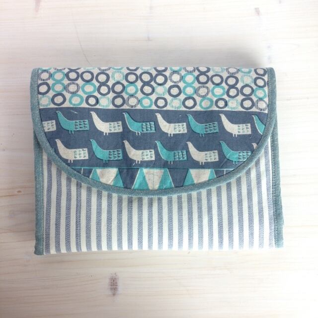 じゃばら開きのマルチケース*タブレットケース*母子手帳ケースなどに(アオ・バード)
