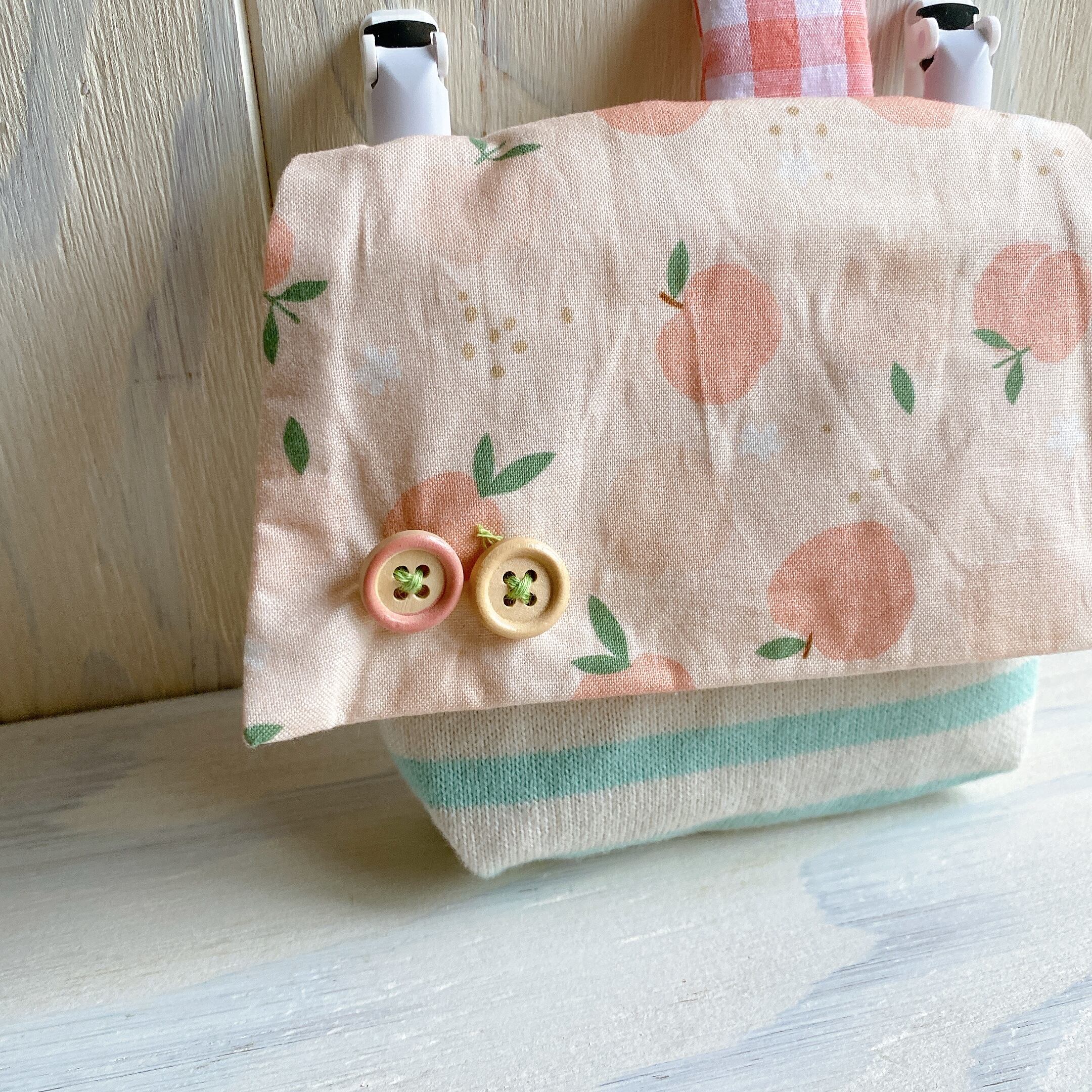 裏にはちいさいポケットを付けて絆創膏なども持ち歩けるようにしました。