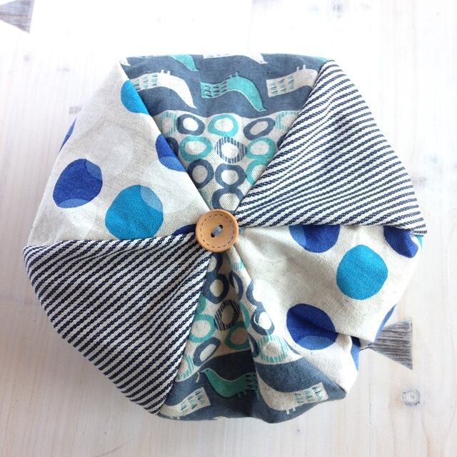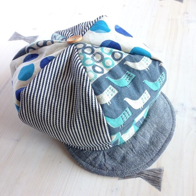 相性の良い3種類の生地を組み合わせて賑やかなキャスケットにしてみました。