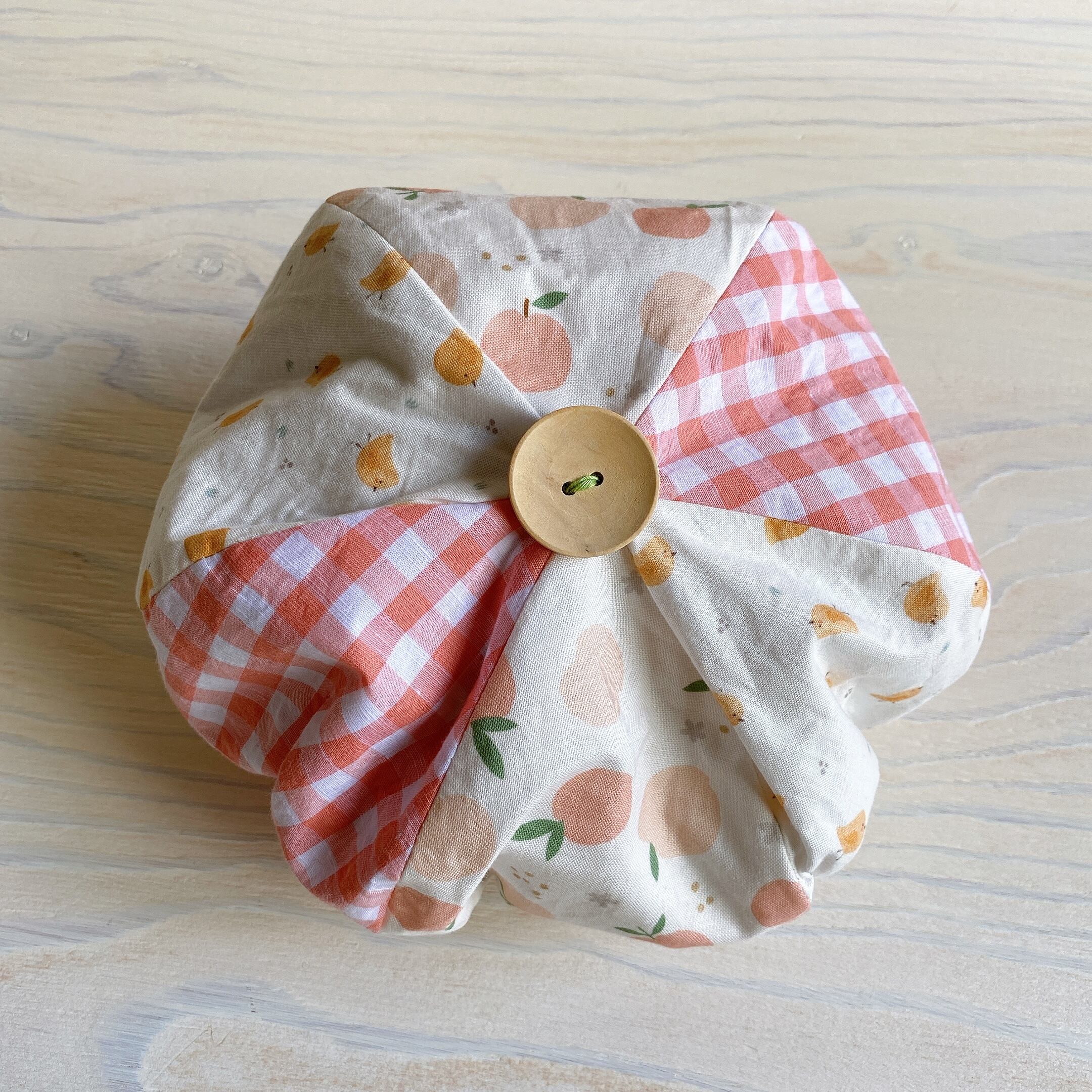 相性の良い3種類の生地を組み合わせて賑やかなキャスケットにしてみました。