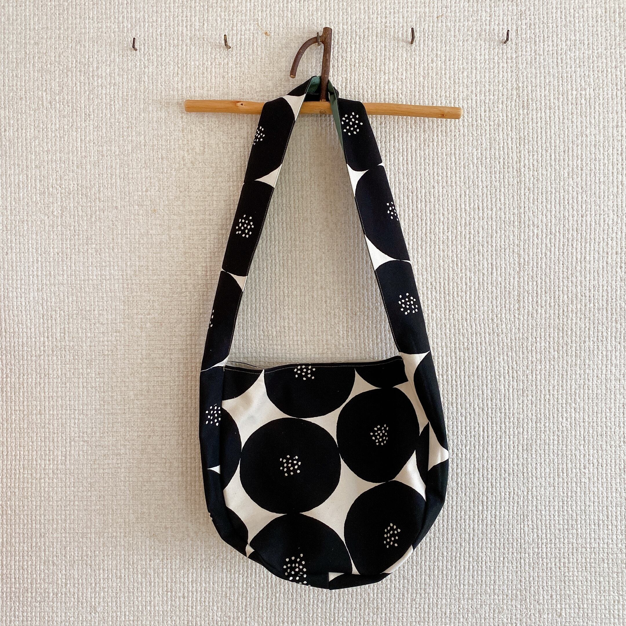 ころんと丸いフォルム、アンパン柄の色味がとても素敵なバックです。