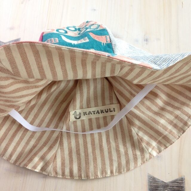 相性の良い3色の生地を組み合わせてチューリップハットにしました。