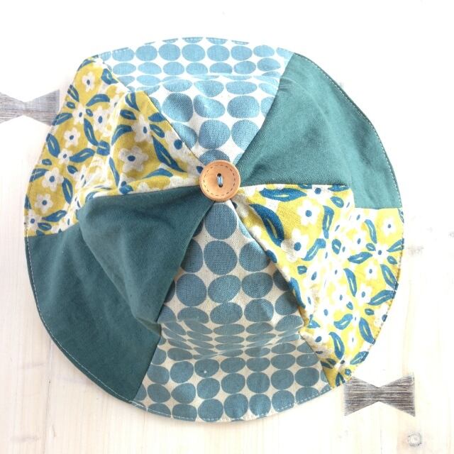 相性の良い3色の生地を組み合わせてチューリップハットにしました。
