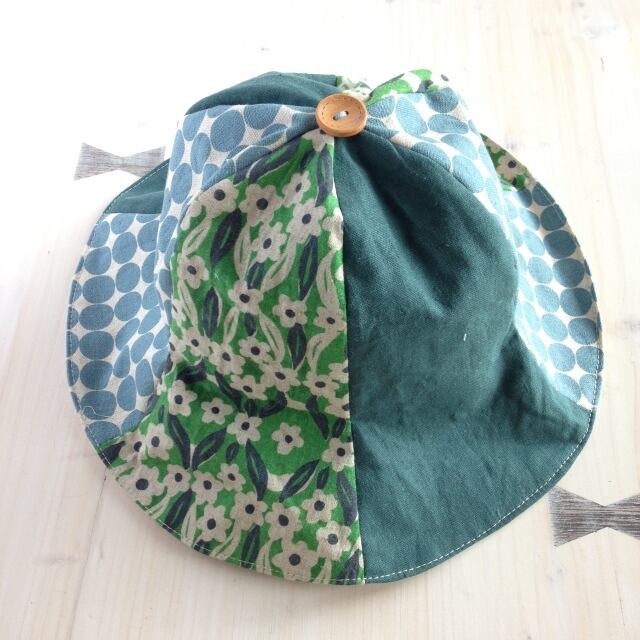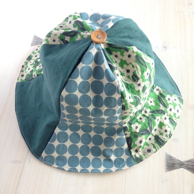 相性の良い3色の生地を組み合わせてチューリップハットにしました。