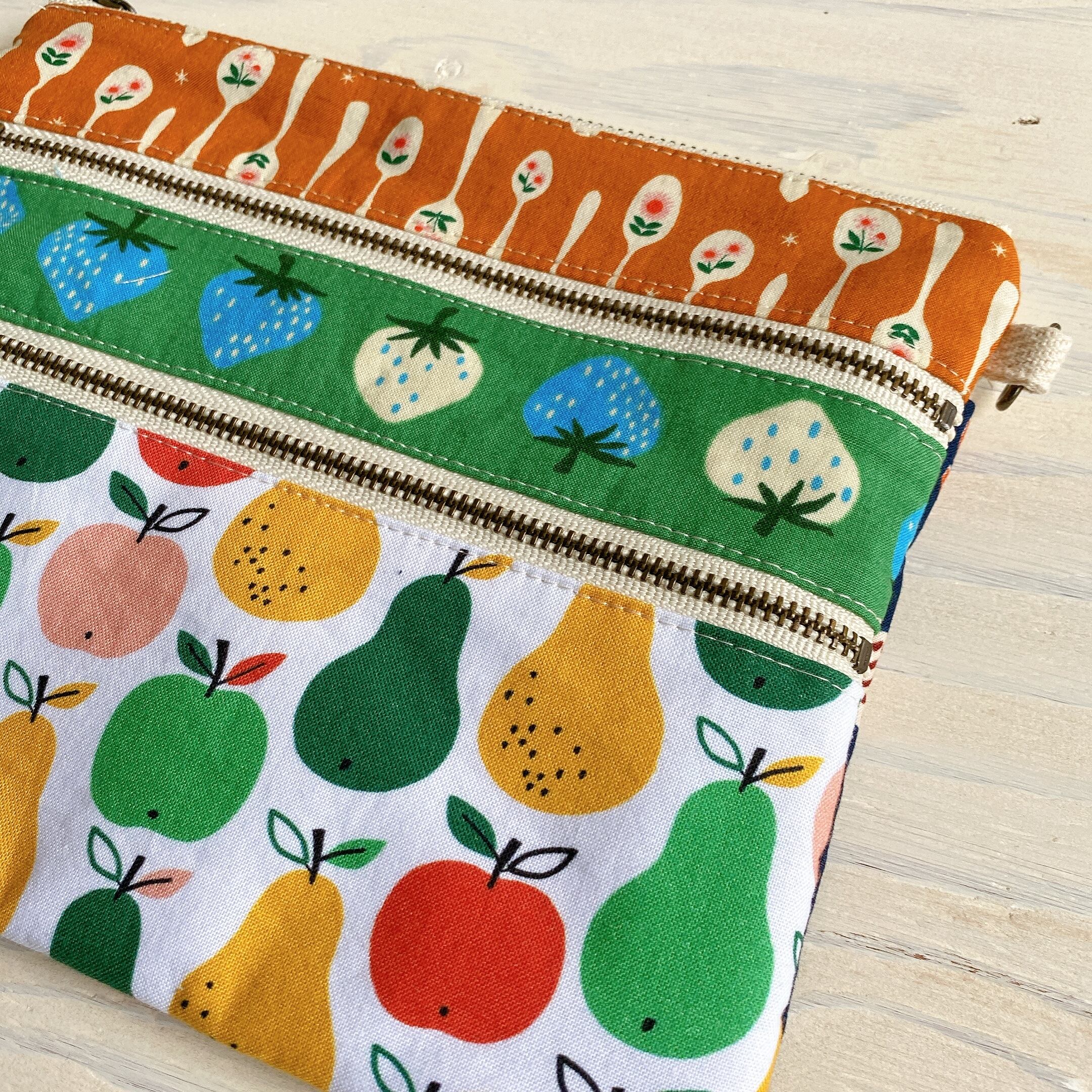 3ファスナーフラットポーチ(洋梨)マスク入れにも♪ポシェットにも♪