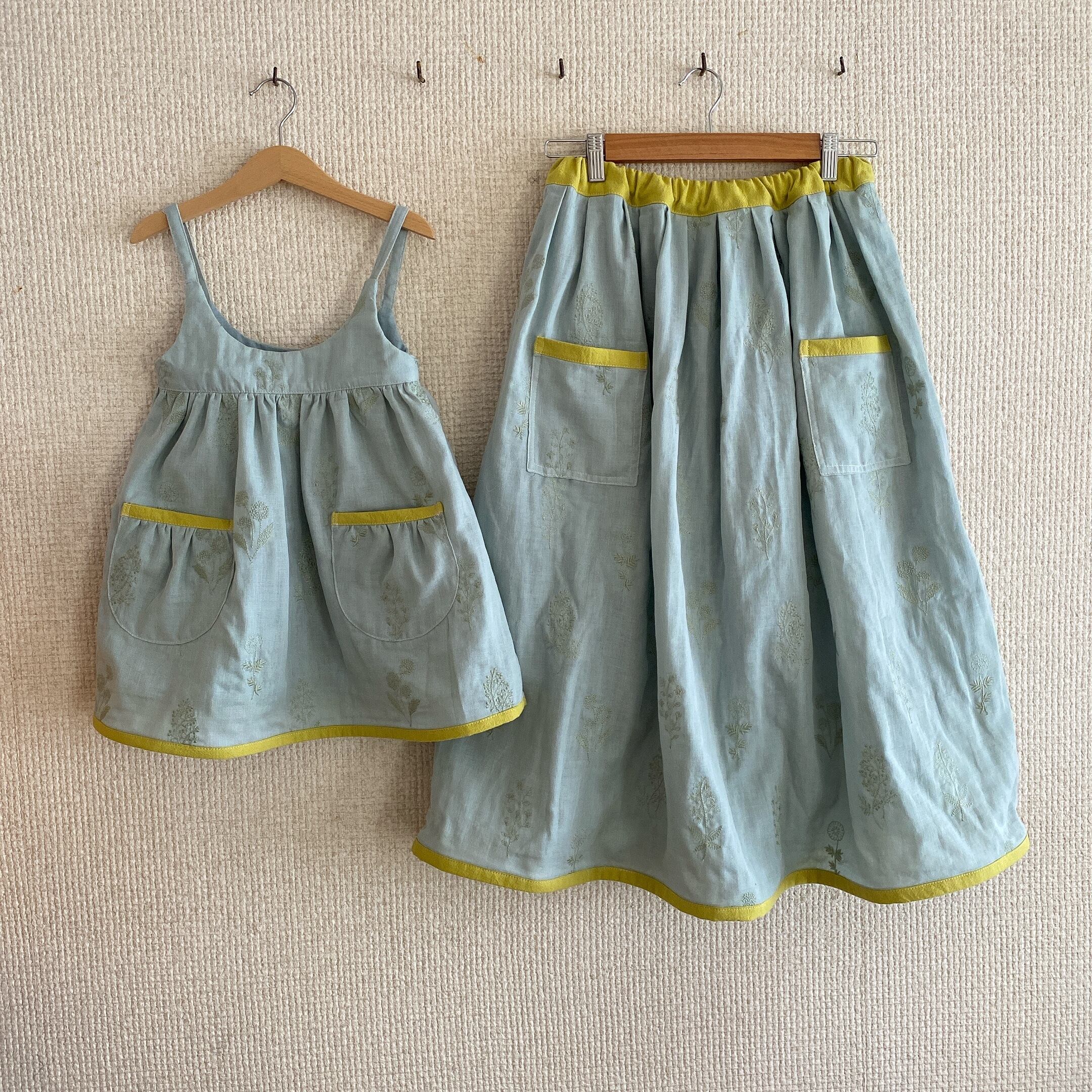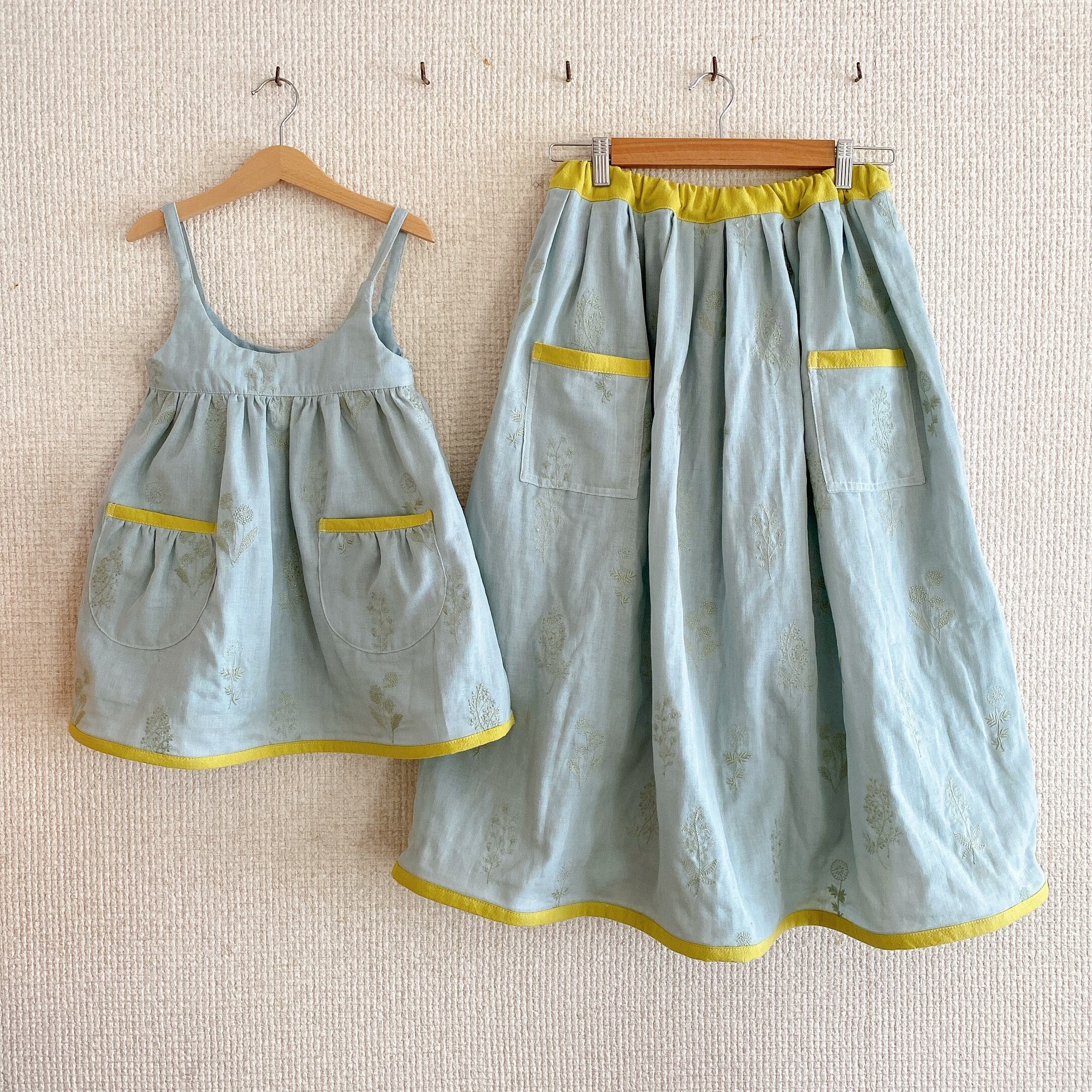 【オーダーのお品】ガーゼ刺繍のタックスカートとキャミワンピ(サイズ100)