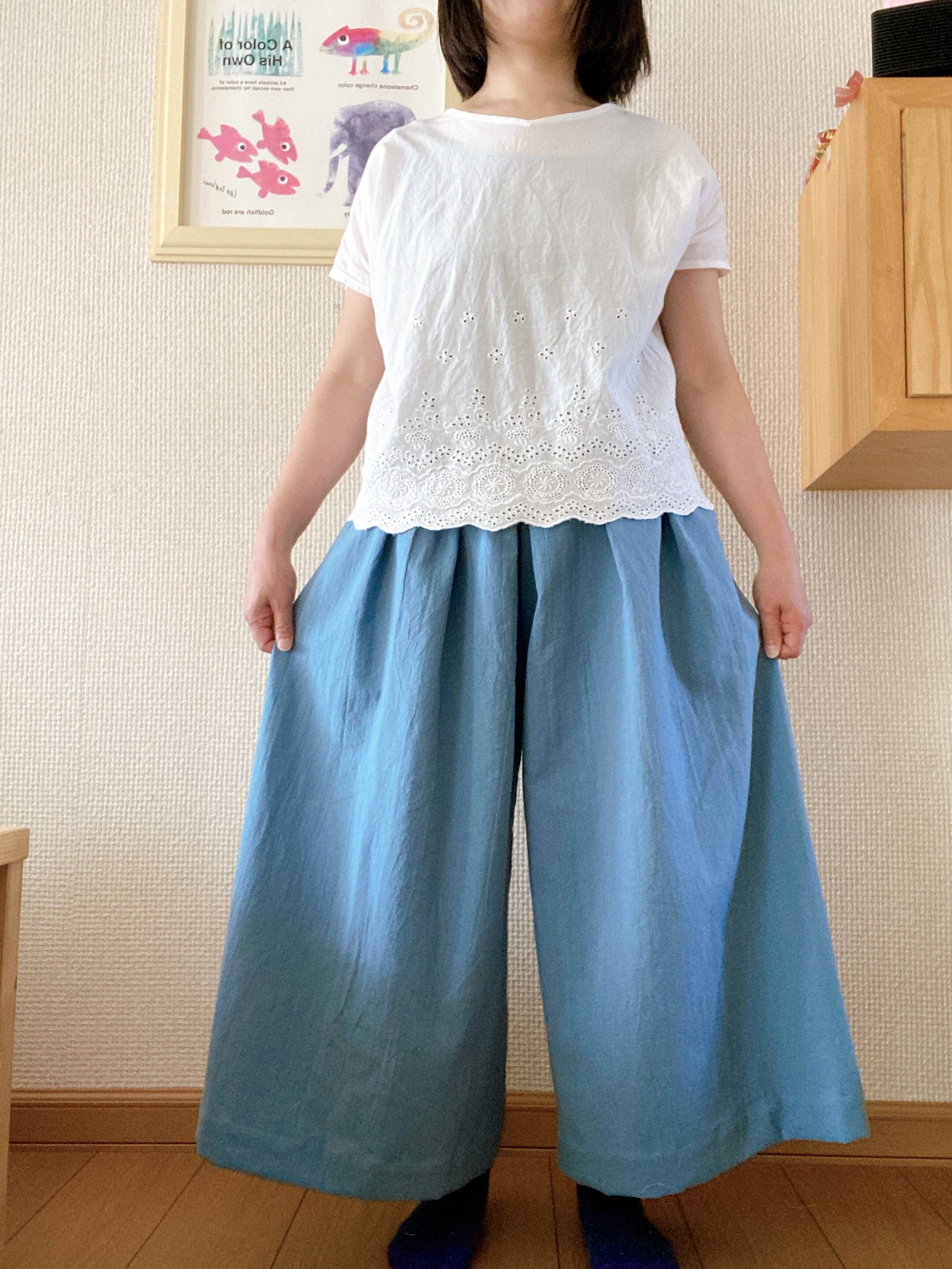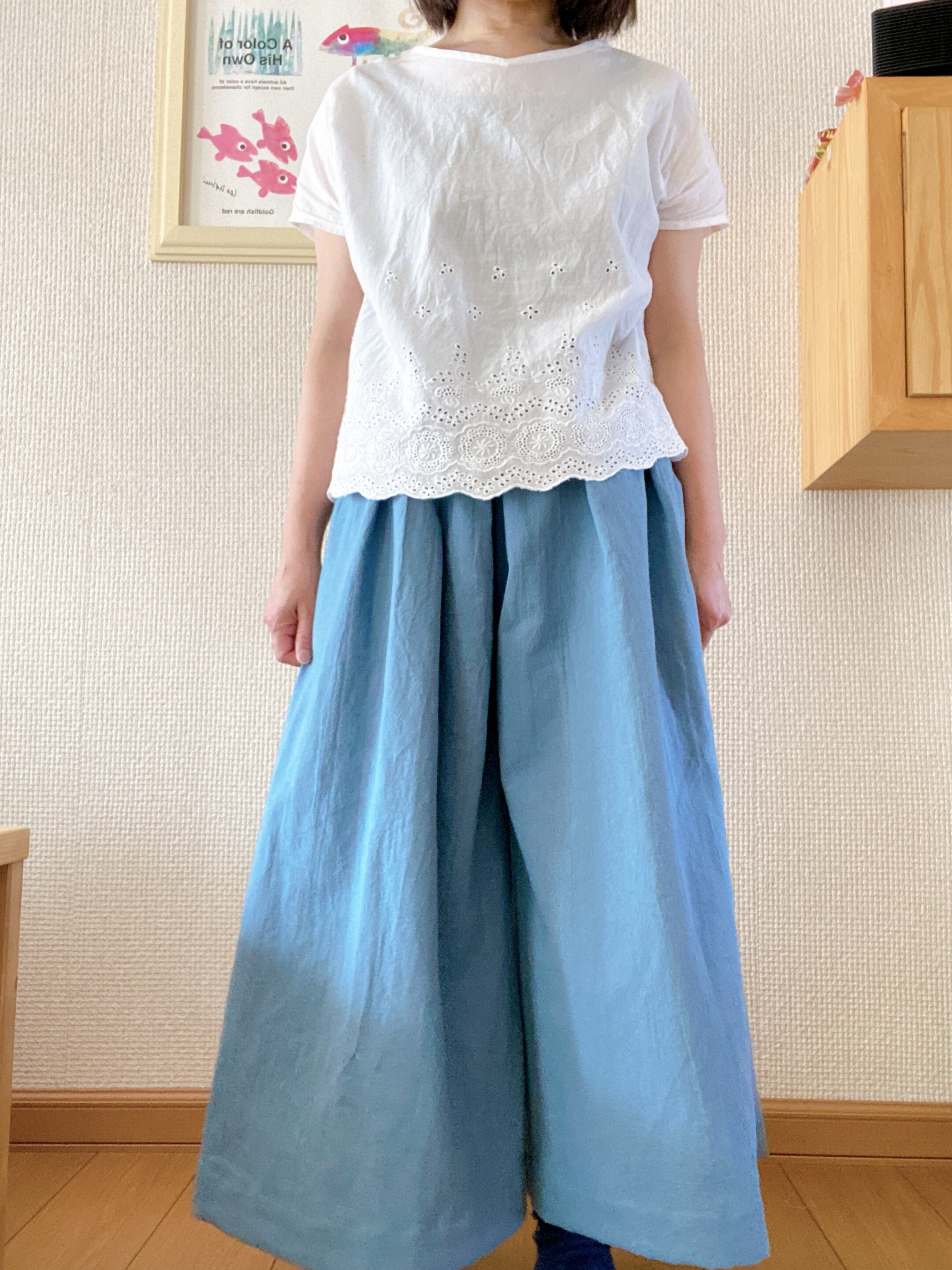 【オーダーのお品】たっぷりガウチョパンツ(スモークブルー)