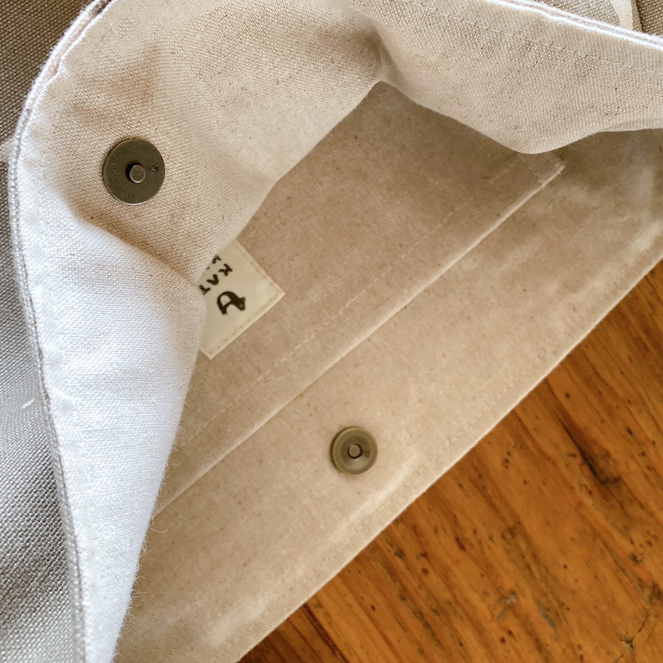 綿麻キャンバスの裏地付きで、大き目な内ポケットがありますので
