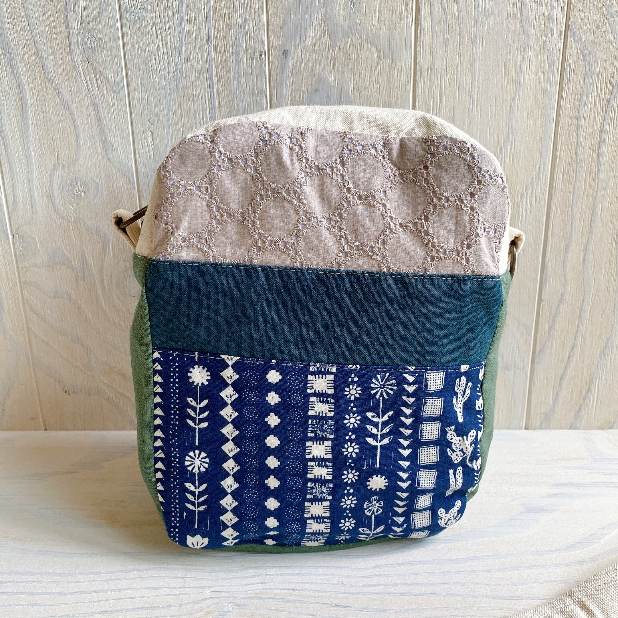 両面さまざまな相性の良い生地を組み合わせて斜め掛けできるおとなのポシェットを作りました。