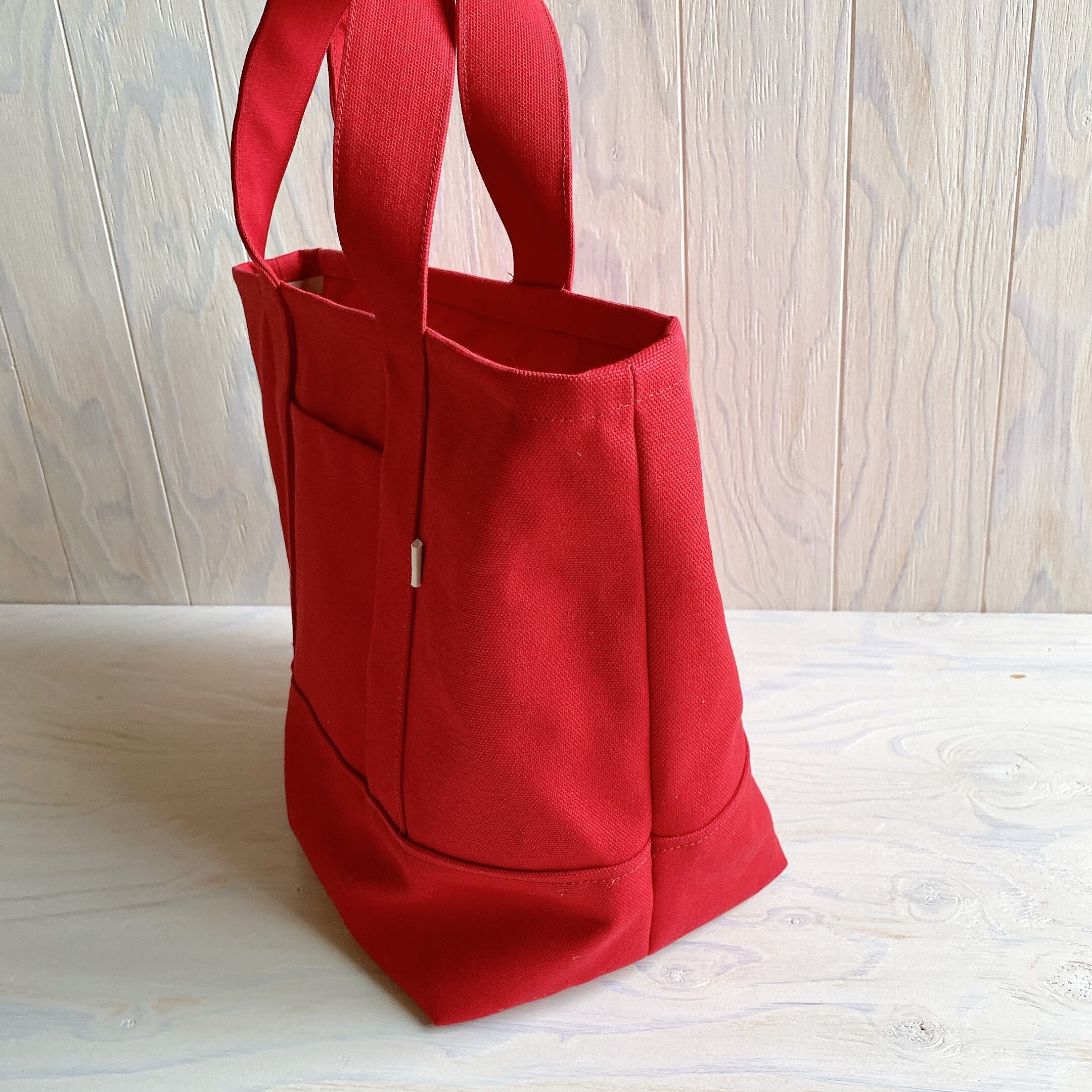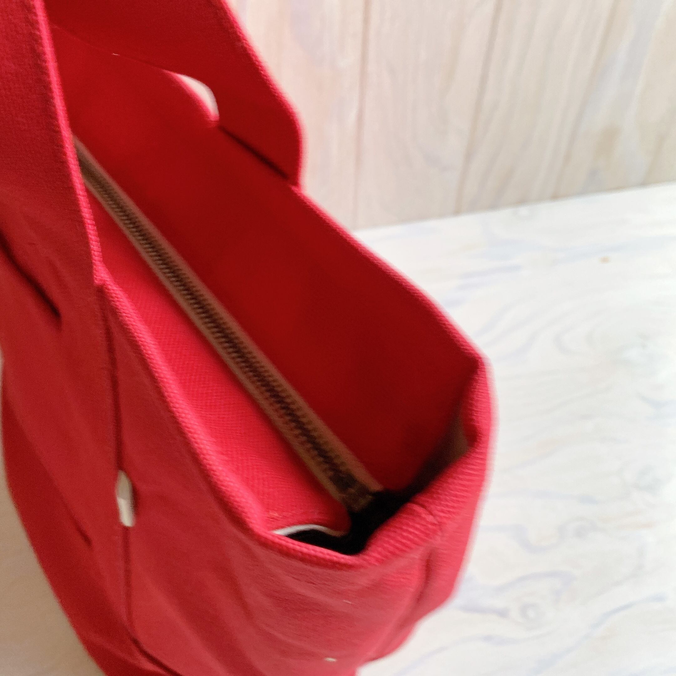 【オーダーのお品】8号帆布のしっかりトートバック大・ファスナータイプ(アカ)